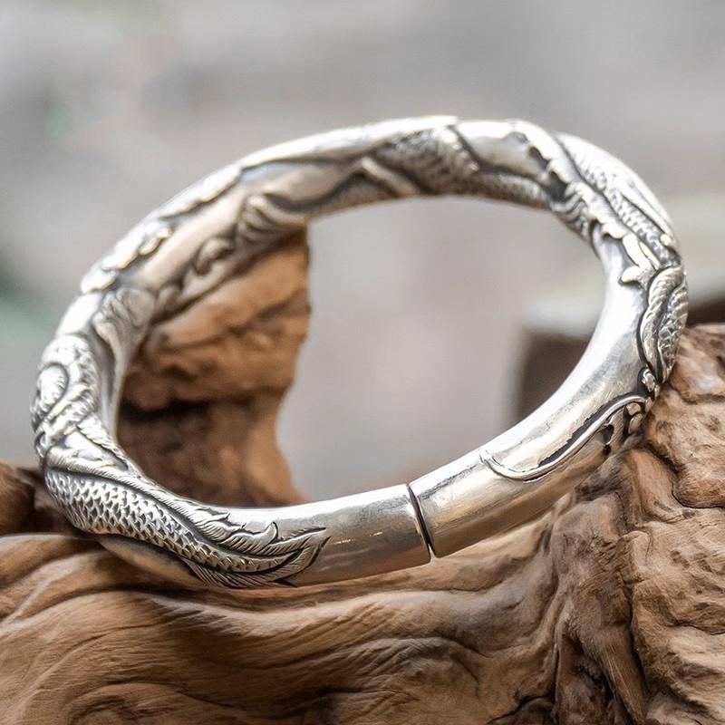 Браслет Guan Gong мужской, прочный, высокого класса, в стиле ретро, мужской, мощный, открытый, цилиндрический, рельефный браслет