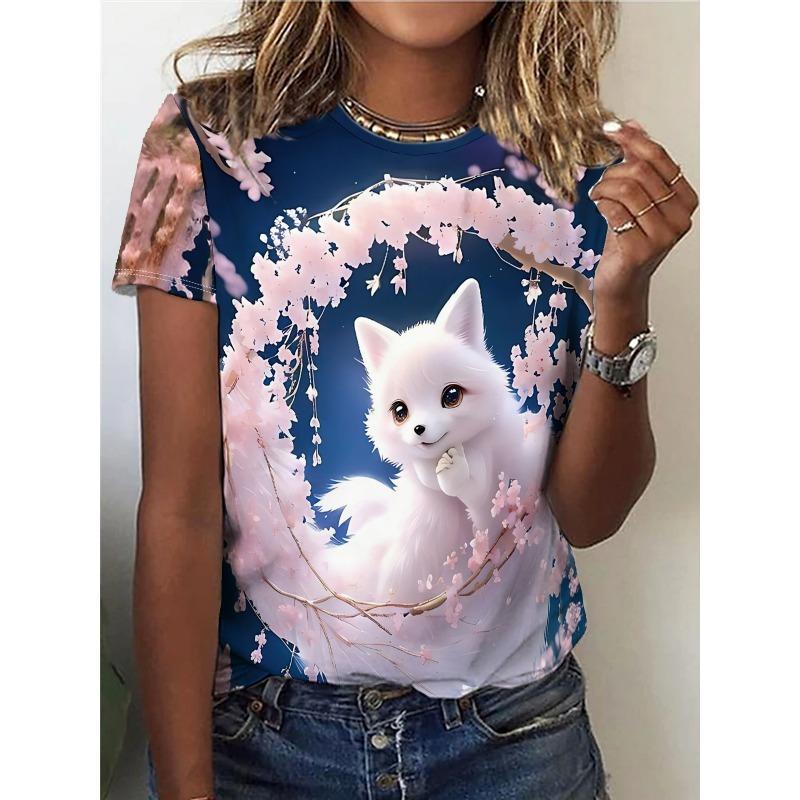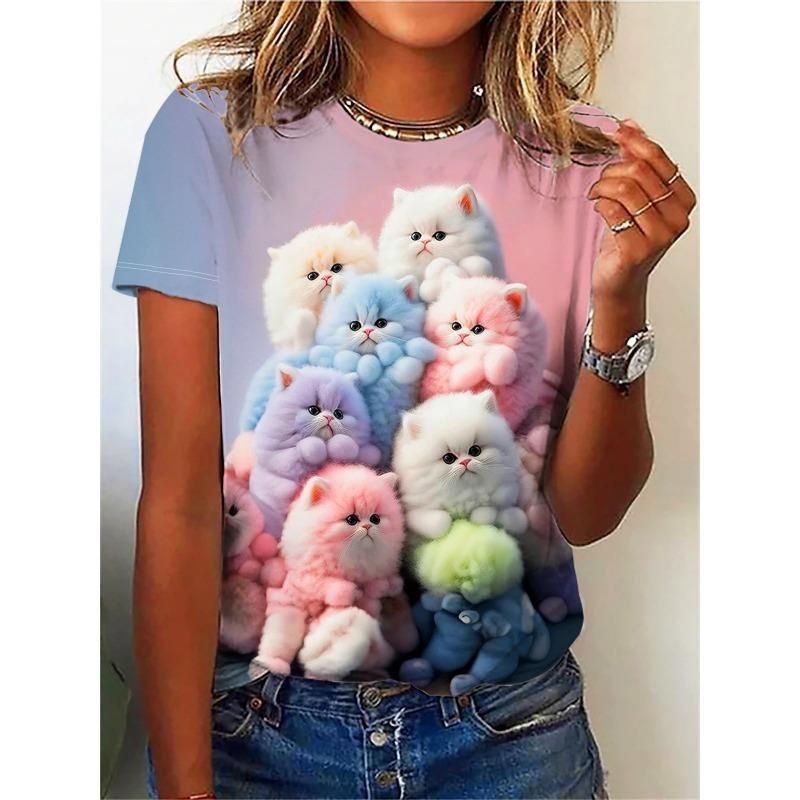 Модная женская милая летняя футболка с рисунком из мультфильма «Животное-кошка» с 3D-принтом, женская уличная повседневная футболка Y2k с коротким рукавом и круглым вырезом