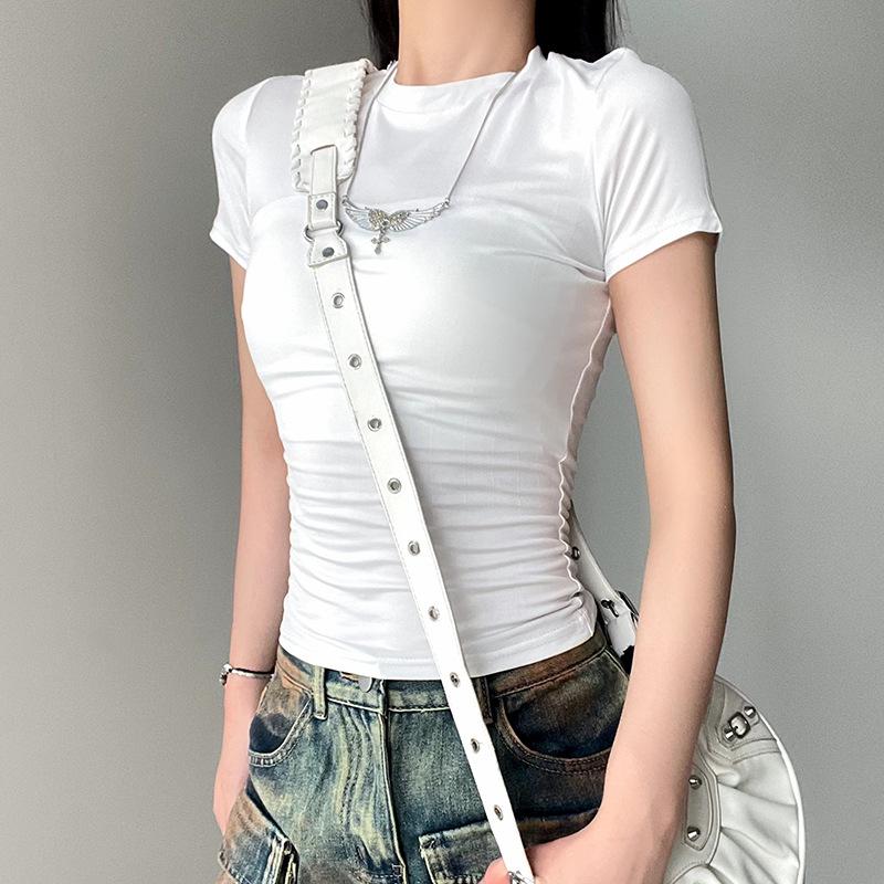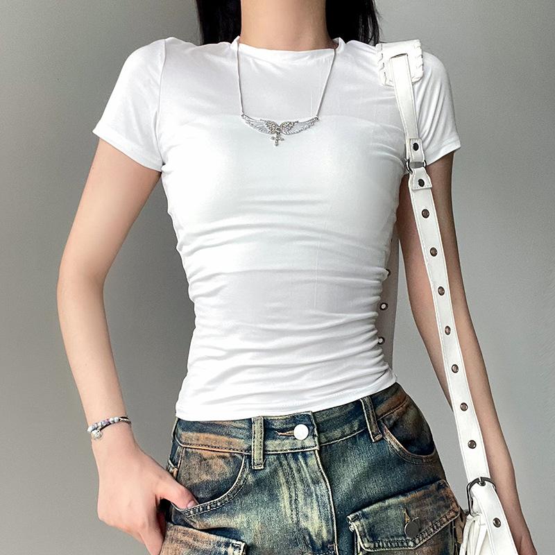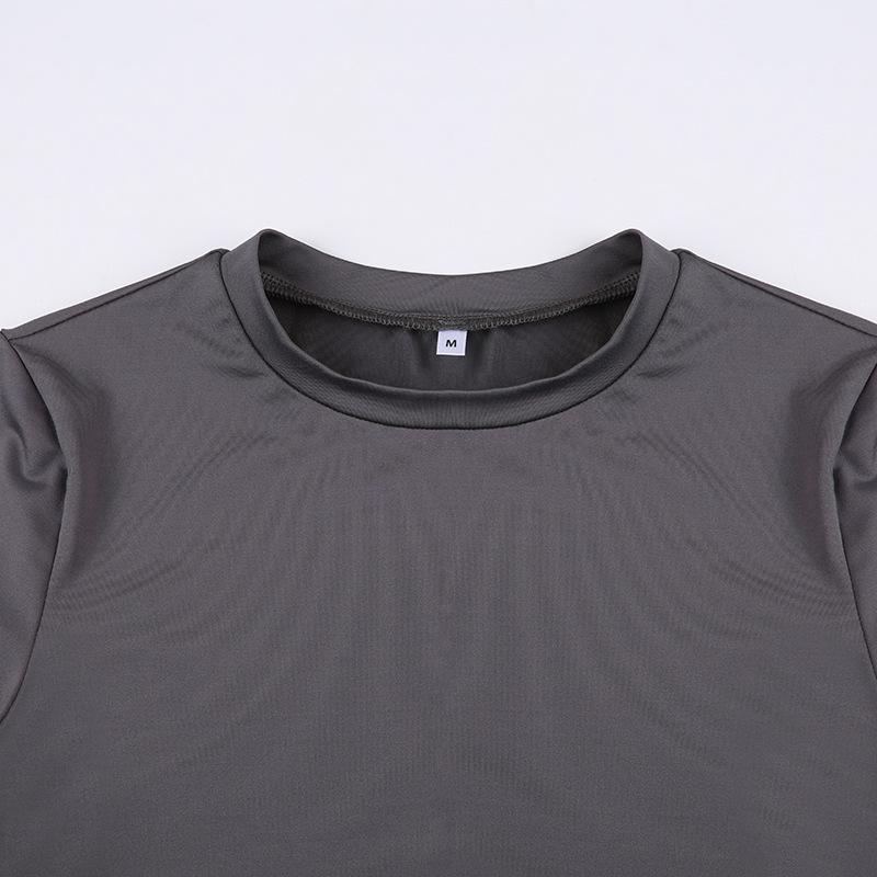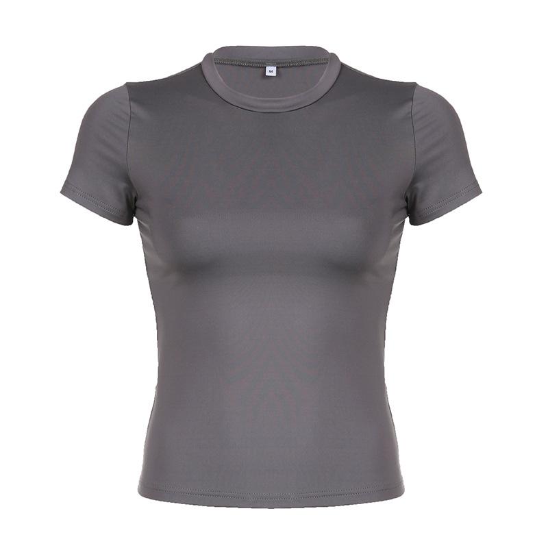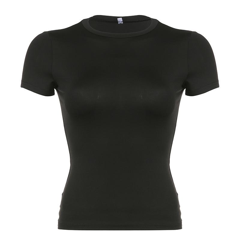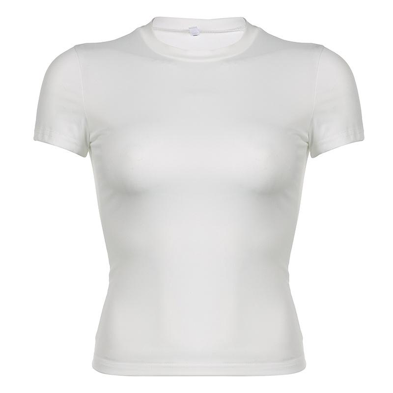 Женская однотонная футболка с круглым вырезом, базовая футболка, облегающий летний топ, повседневная облегающая футболка с коротким рукавом для модных нарядов