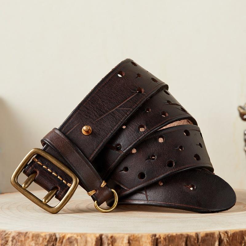 Ремень Personality Trend с двойной пряжкой из натуральной кожи для мужчин, молодежный ремень из натуральной кожи в стиле ретро