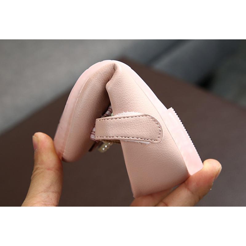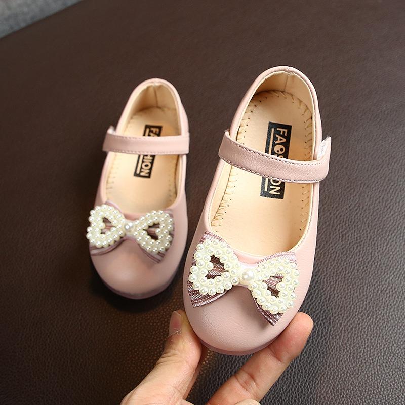 Однотонные, для девочек, жемчуг, банты, одинарные туфли, детские, туфли на плоской подошве