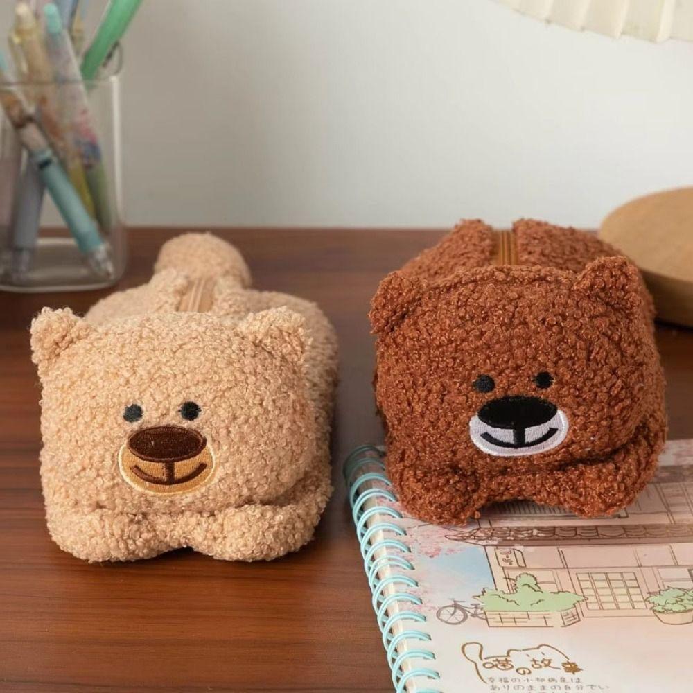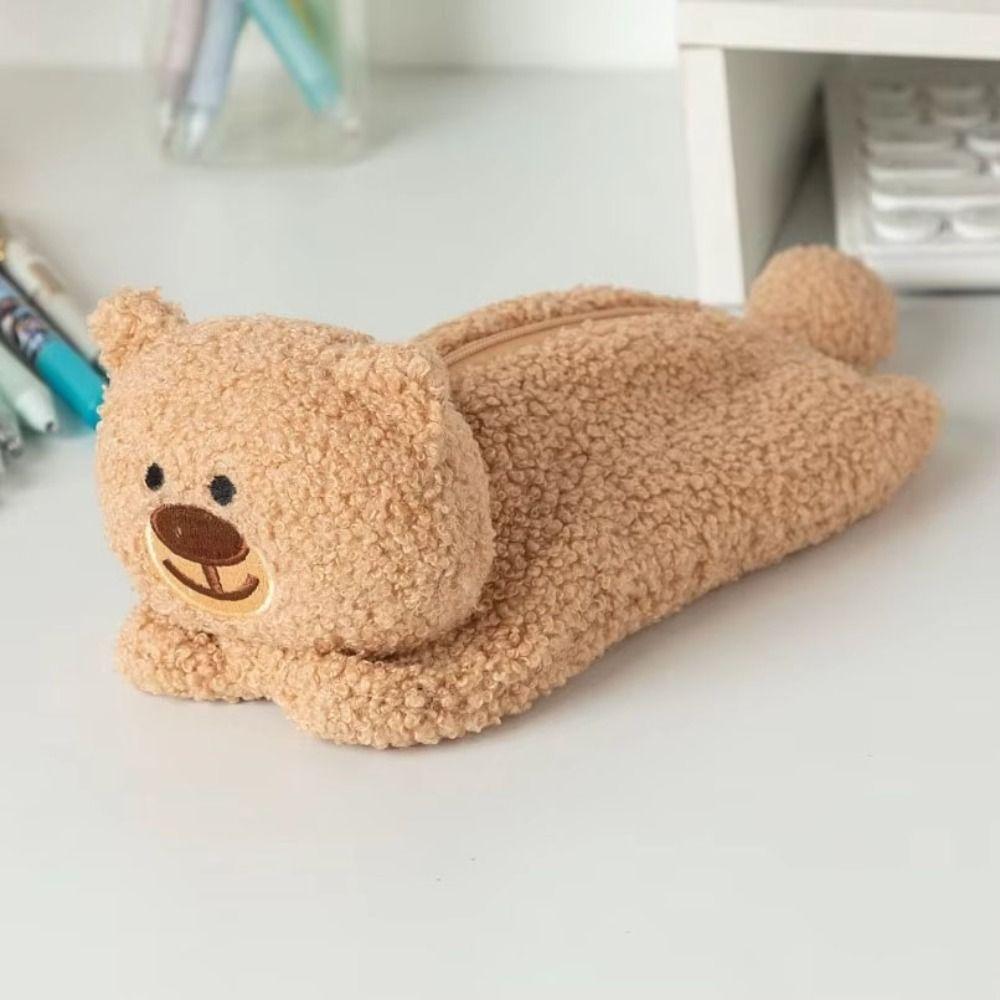 Large Capacity Bear Plush Pencil Case Cute Design Stationery Storage Bag Bear Plush Pen Bag Office