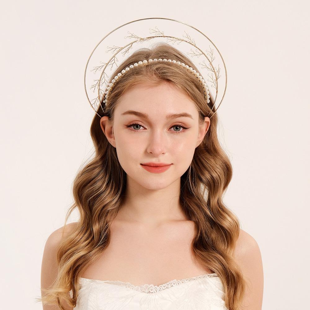 Обруч для волос Crystal Goddess Halo Солнце Барокко Жемчужина Обруч для волос Крестная мать Тиара Корона Лолита Аксессуар