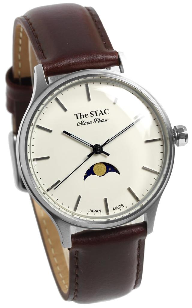 [The Stack] The STAC Made in Japan Domestic Watch 36mm Antique Retro Men's Women's Unisex Moon Phase Bar x White Brown ST-MF001 — купить товар онлайн с бесплатной доставкой до всему миру!
