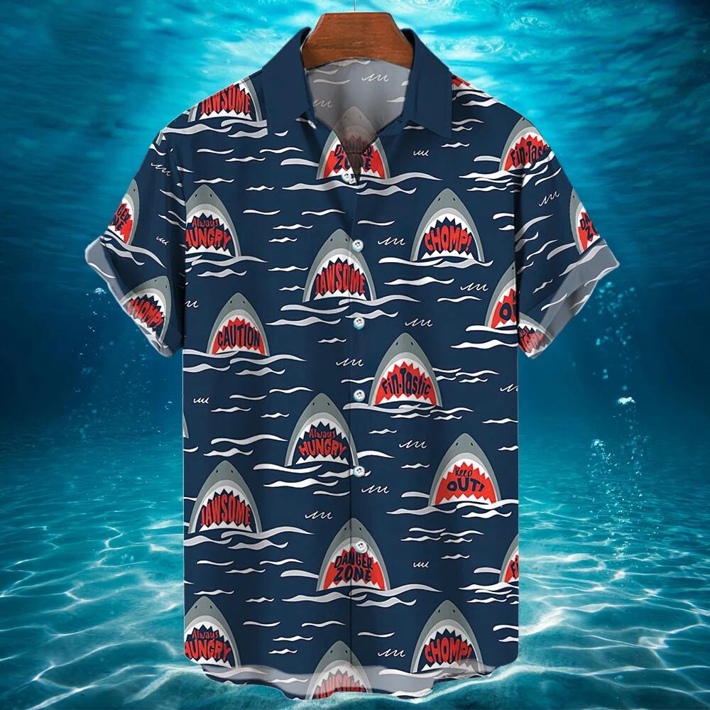 Мужские рубашки для мужчин, забавные топы с 3D-принтом акулы, повседневная мужская одежда, летние топы с короткими рукавами, свободная рубашка большого размера