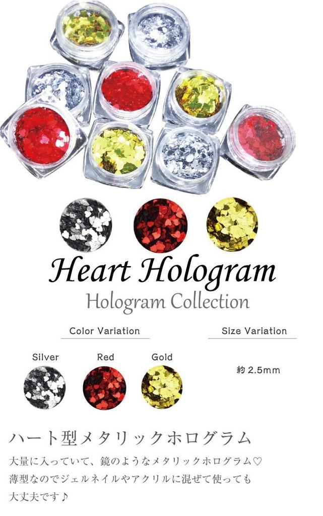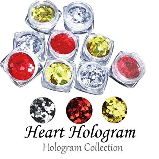 Dekorun Kobo Сердце Голограмма 3 типа Неоновый цвет Поп-цвета Ногти Целлофановые детали для ногтей Принадлежности для ногтей Сердце Красная голограмма,