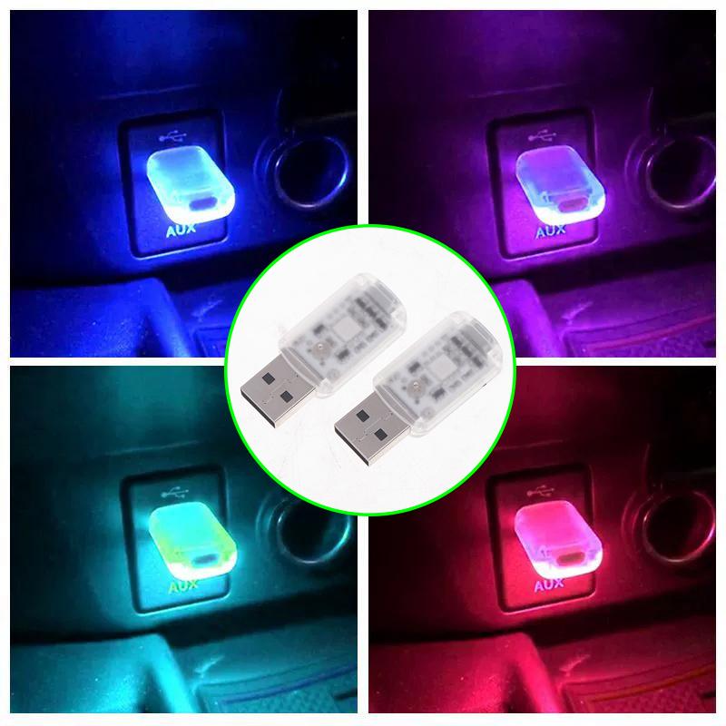 2 шт. Мини USB автомобильное окружающее освещение 7 цветов светодиодная лампа настроения неоновая атмосфера подключаемый свет ноутбуки розетки ночник