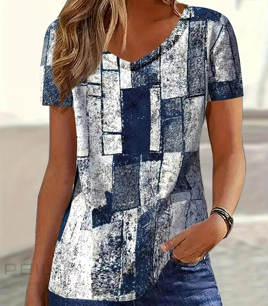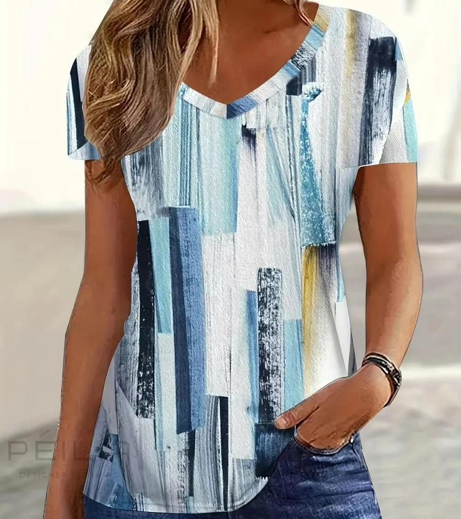 S-8XL Плюс Размер Модная женская футболка с V-образным вырезом и коротким рукавом, летняя футболка с 3D-принтом и цветочным принтом, свободные топы, несколько цветов