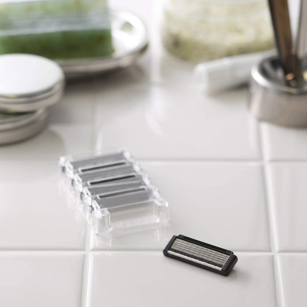 [5-лезвийное сменное лезвие, подходящее для чистого бритья] Тип с 5 лезвиями, позволяющий тщательно бриться. Попробуйте не только те, кто любит гладкое бритье, но и новички, которых не устраивают 4 лезвия.. Держатель + запасное лезвие поставляются в виде единой детали и подходят для пробного использования.