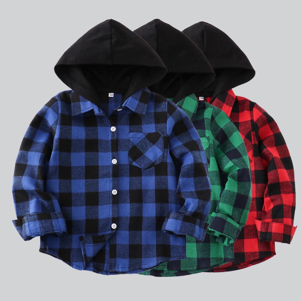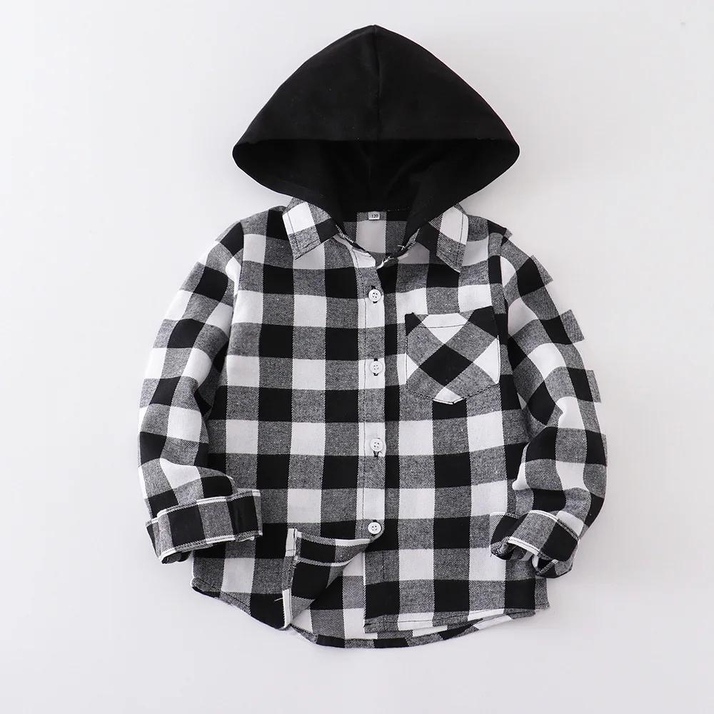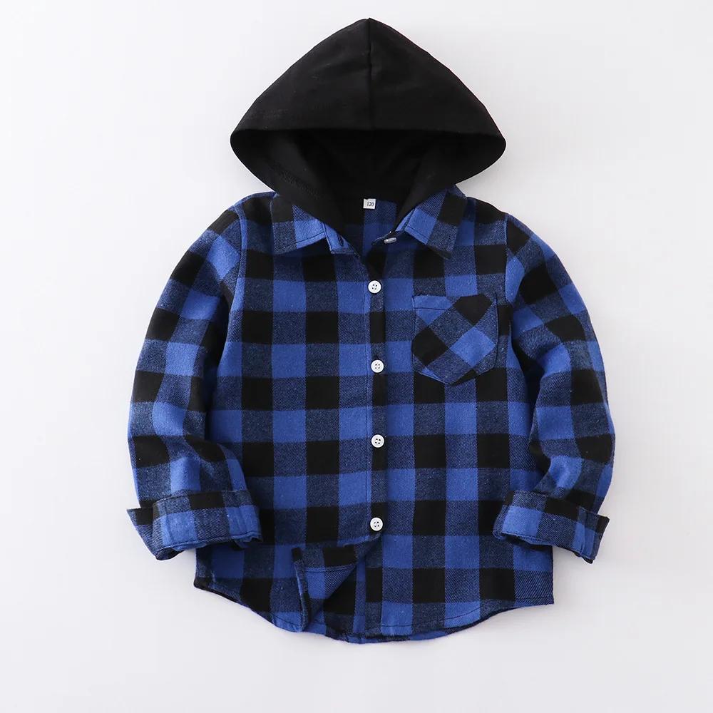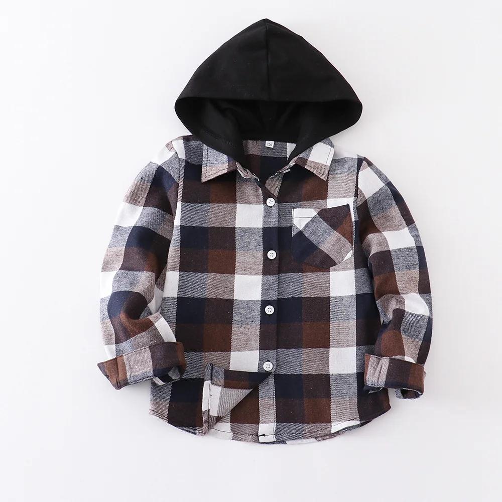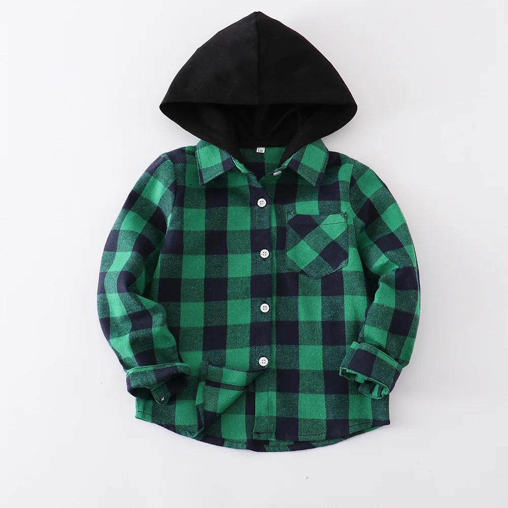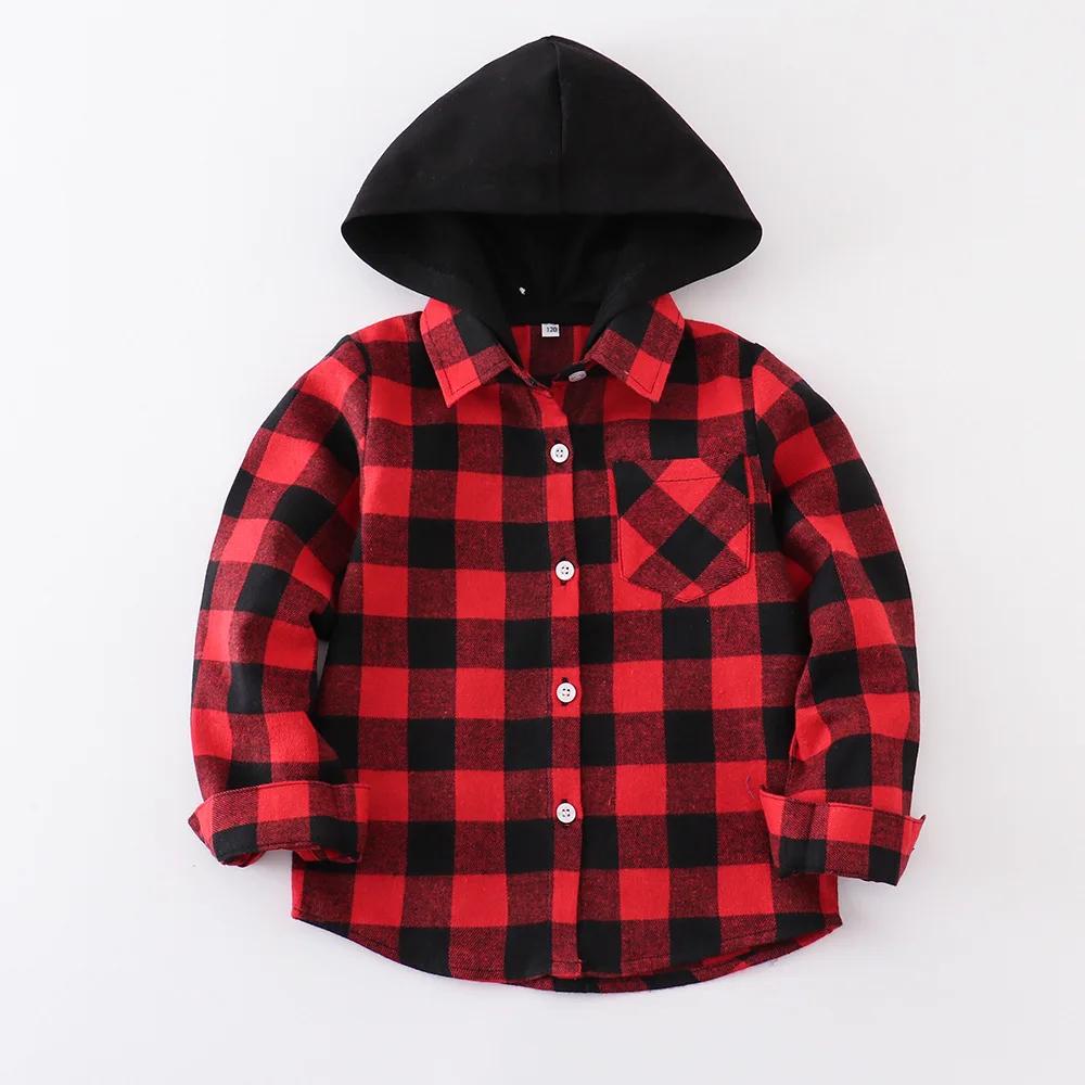 Рубашка в клетку для подростков и мальчиков, повседневная верхняя одежда с капюшоном, весна-осень, модная универсальная блузка для девочек 2-7 лет, детские топы