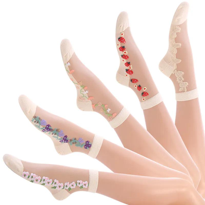 5 пар женских чулок с промежуточной подошвой, летние кружева, новый стиль вышивки