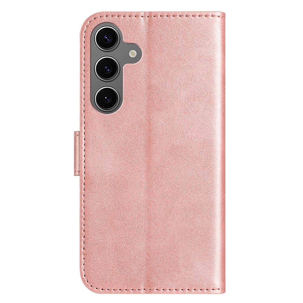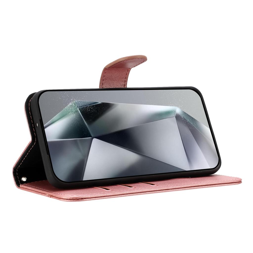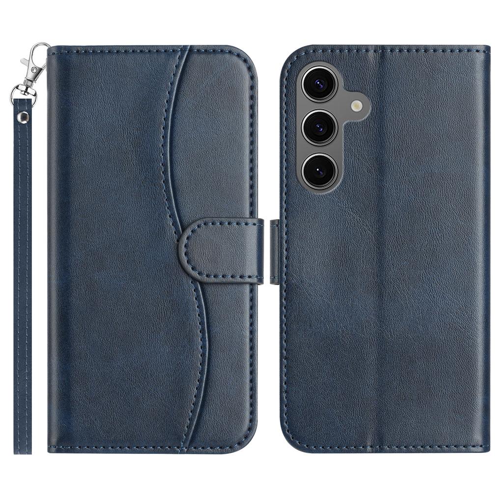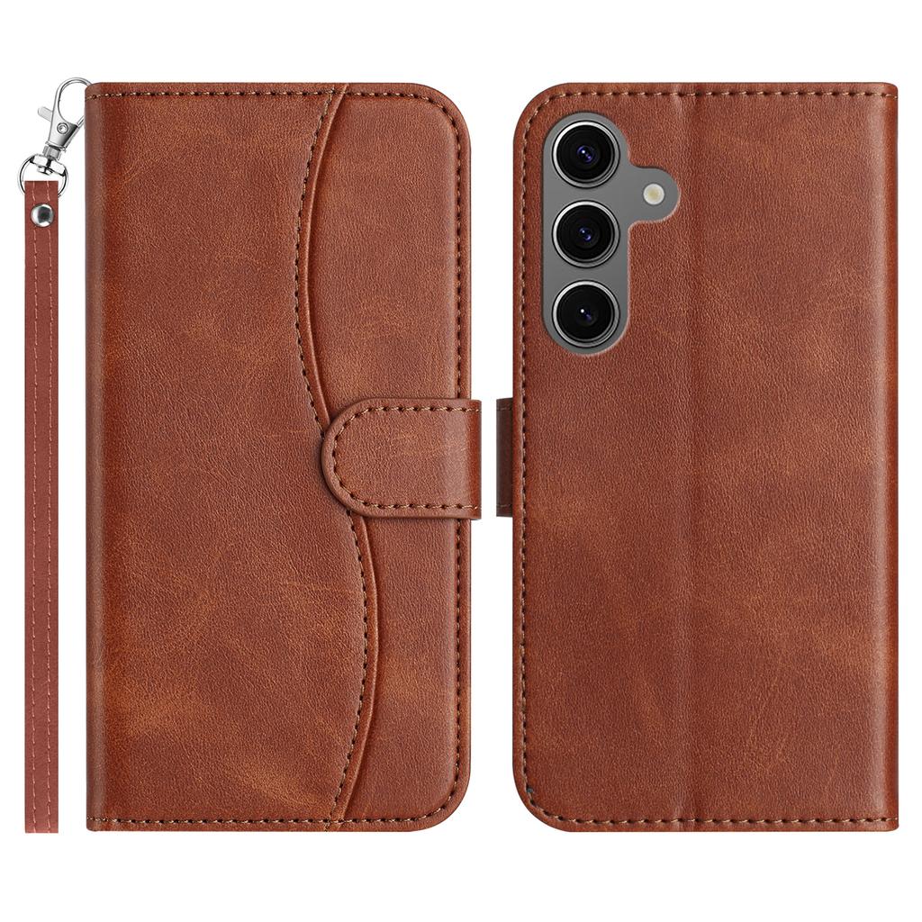 For Samsung Galaxy S24+ Stand Case with Strap PU Leather Wallet Phone Cover S Shape Stitching Design