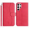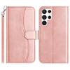 For Samsung Galaxy S24 Ultra Stand Case with Strap PU Leather Wallet Phone Cover S Shape Stitching Design