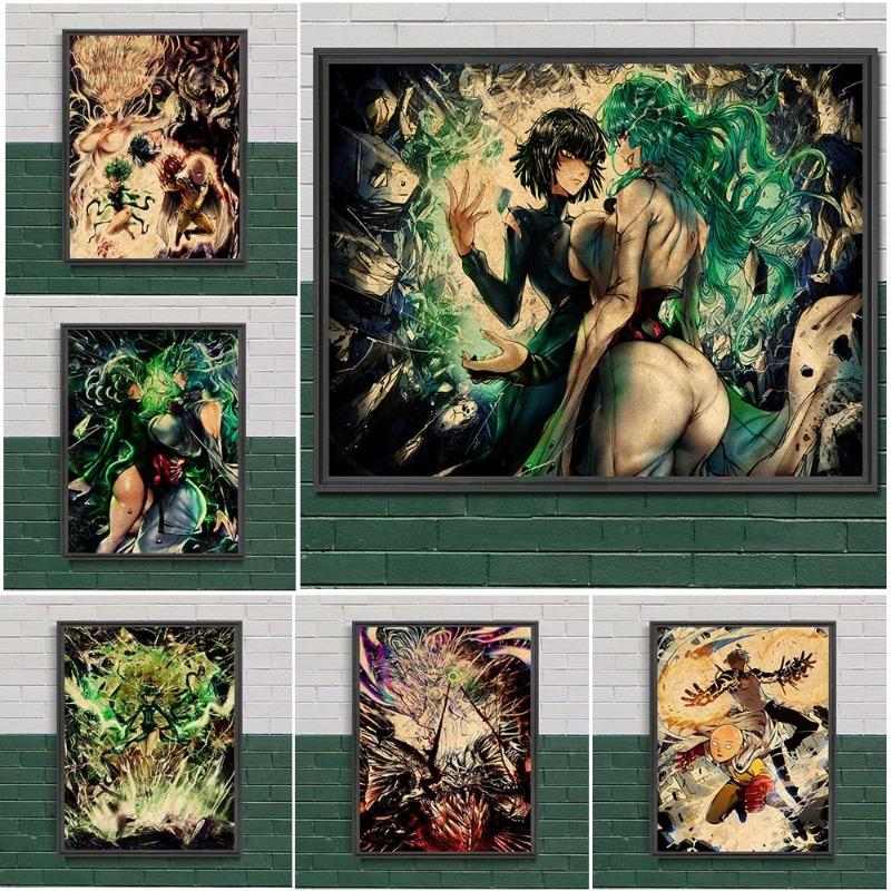 Винтажный аниме-арт на стену «Ванпанчмен» Псайкос Тацумаки Холст Картина Постер Уникальный домашний декор для поклонников аниме