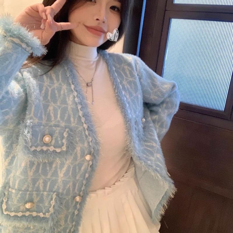 Осень-зима Новое пальто Маленькое ароматное женское стильное высококачественное универсальное норковое флисовое свободное французское стильное шикарное кардиган