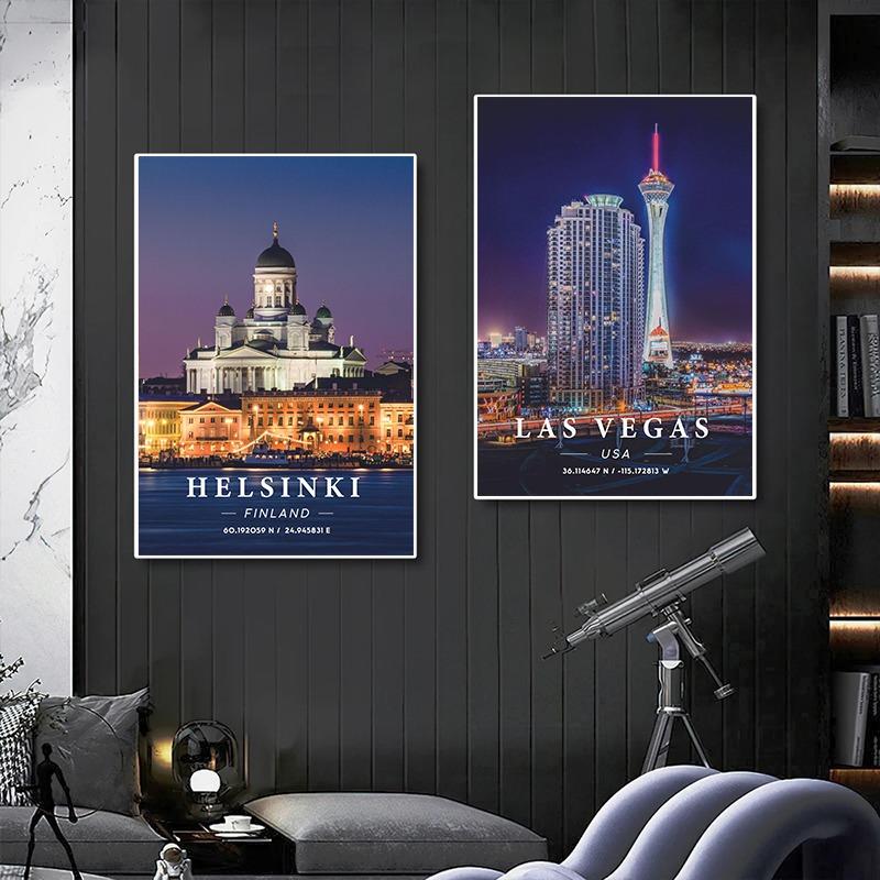 Путешествия Город Париж Мадрид Нью-Йорк Пейзаж Координаты Постеры и принты Картины на холсте Настенные художественные картины Декор для дома