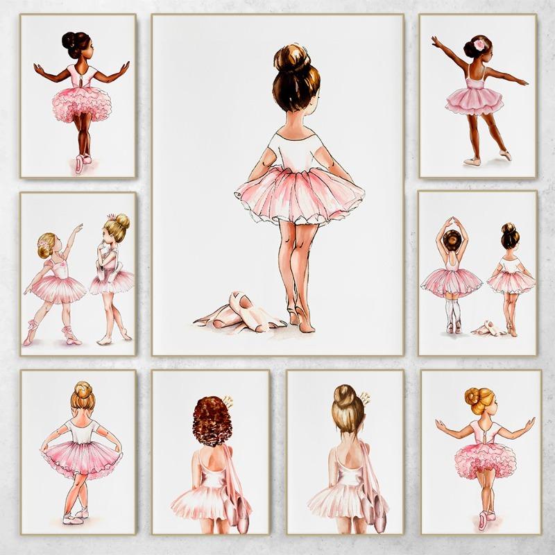 Акварельный постер «Балерина» Красивая девушка танцует балет Холст Живопись Принт Настенное искусство Картина для комнаты девочки Домашний декор Фреска — купить товар онлайн с бесплатной доставкой по всему миру!