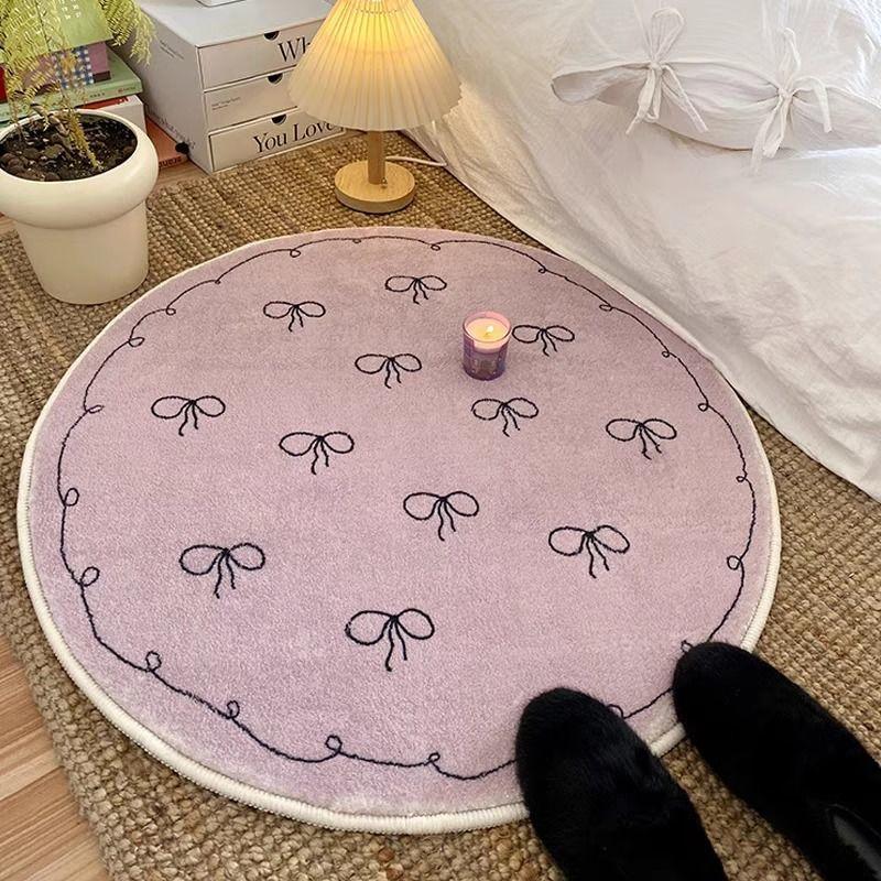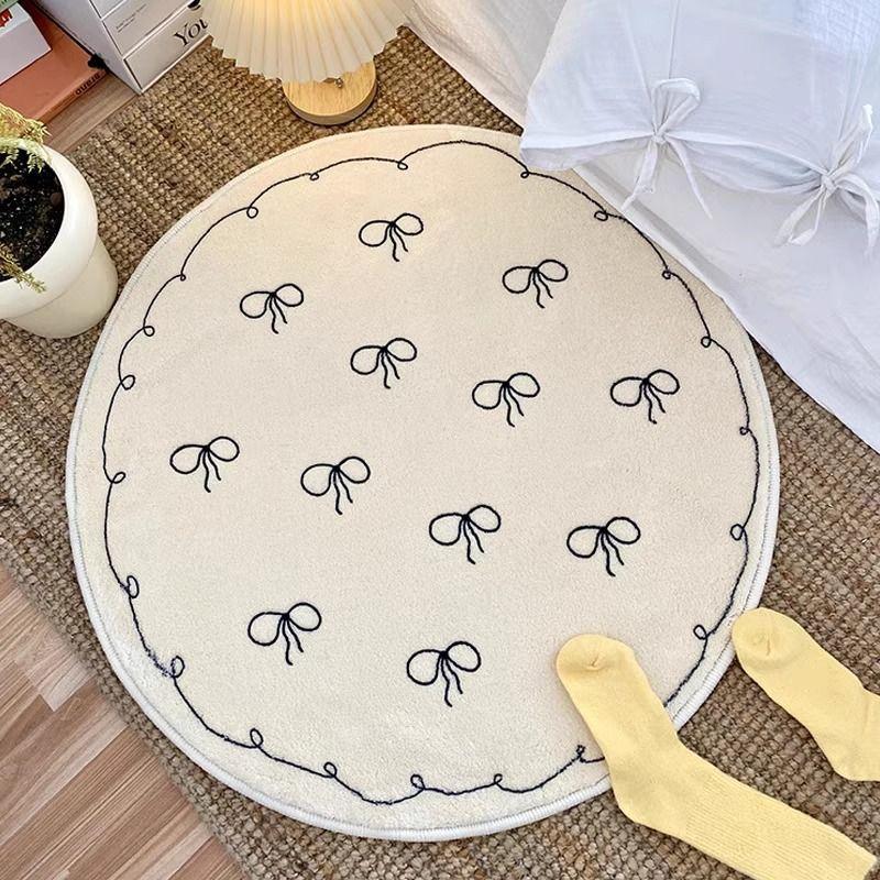 Изысканный ковер с рисунком в виде банта, круглый ковер у кровати, утолщенный милый ковер для игр в кабинете, гостиной, зоны для чтения, напольный коврик