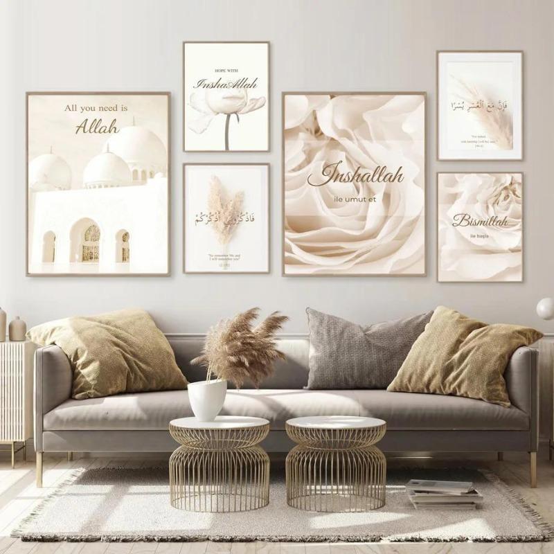 Исламская марокканская тростниковая бежевая цветочная бохо настенная живопись на холсте, скандинавские постеры и принты для декора гостиной