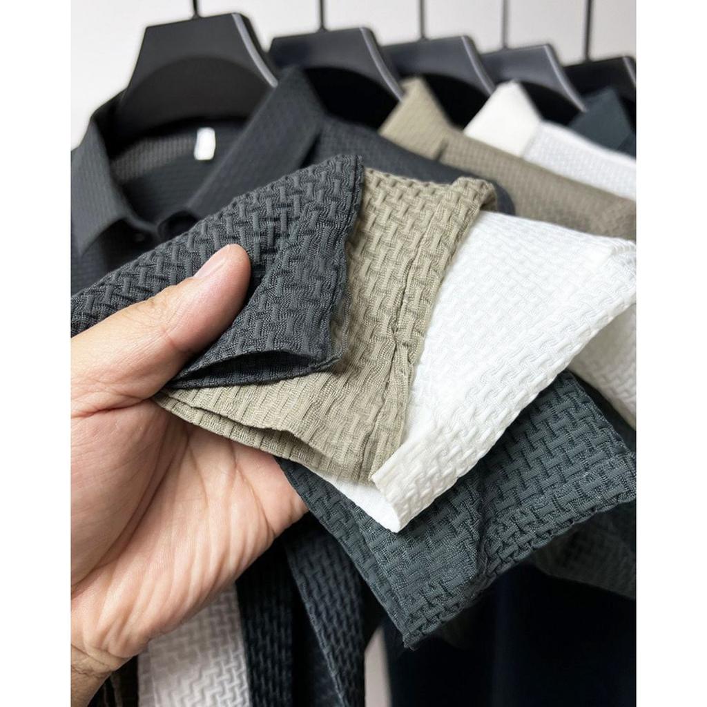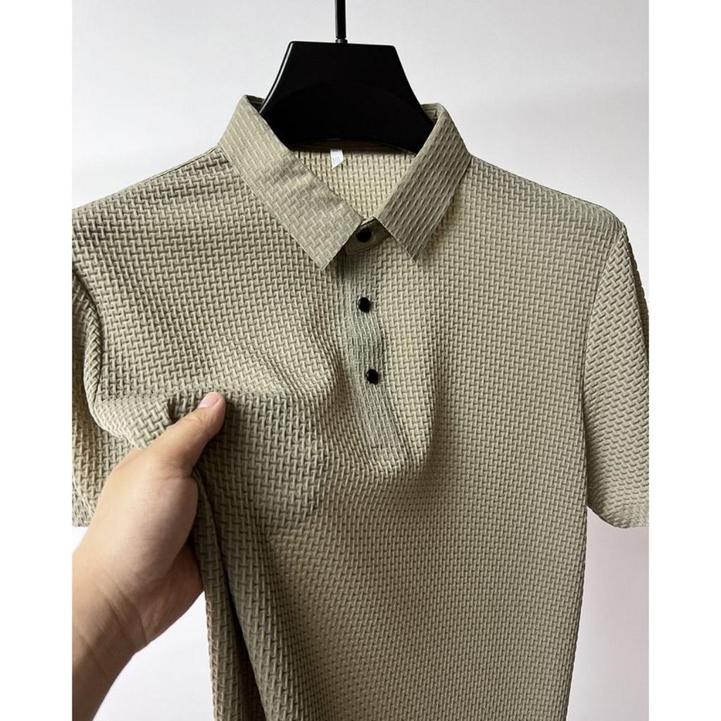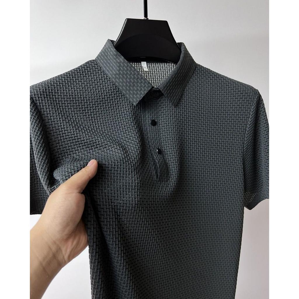 Мужская рубашка из шёлкового волокна Ice Silk - дышащий короткий рукав, геометрический узор, воротник на пуговицах, повседневный топ, летняя версия, повседневный мужской топ | Классическая рубашка