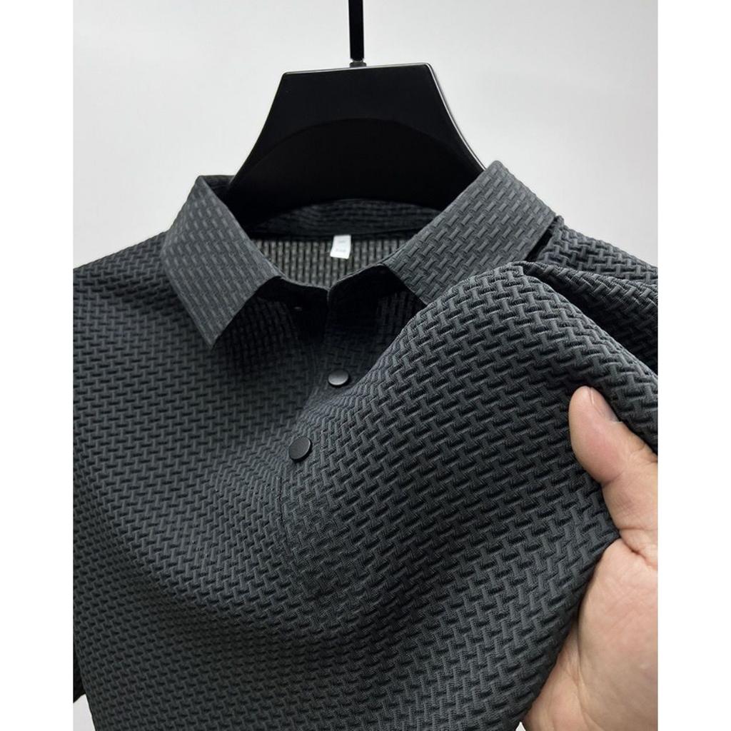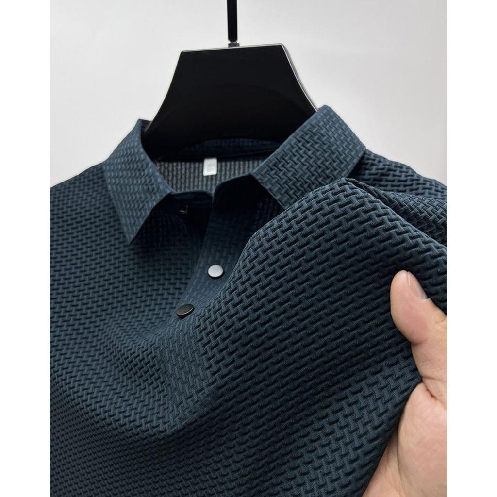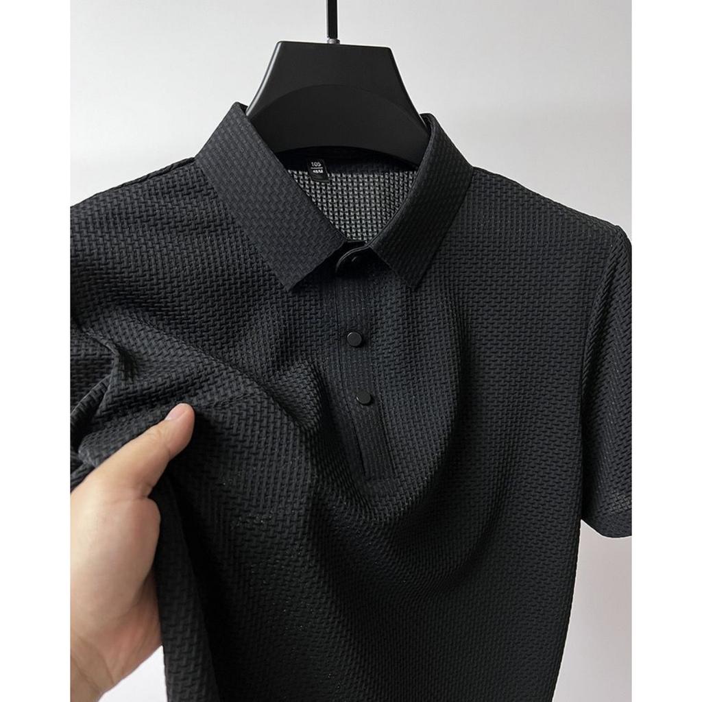 Мужская рубашка из шёлкового волокна Ice Silk - дышащий короткий рукав, геометрический узор, воротник на пуговицах, повседневный топ, летняя версия, повседневный мужской топ | Классическая рубашка