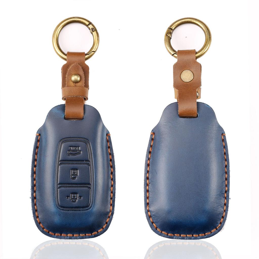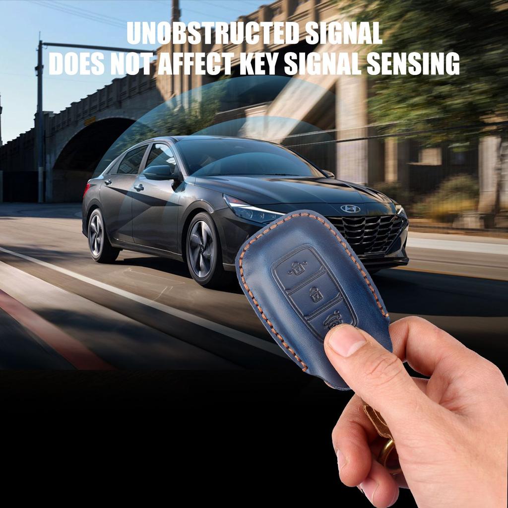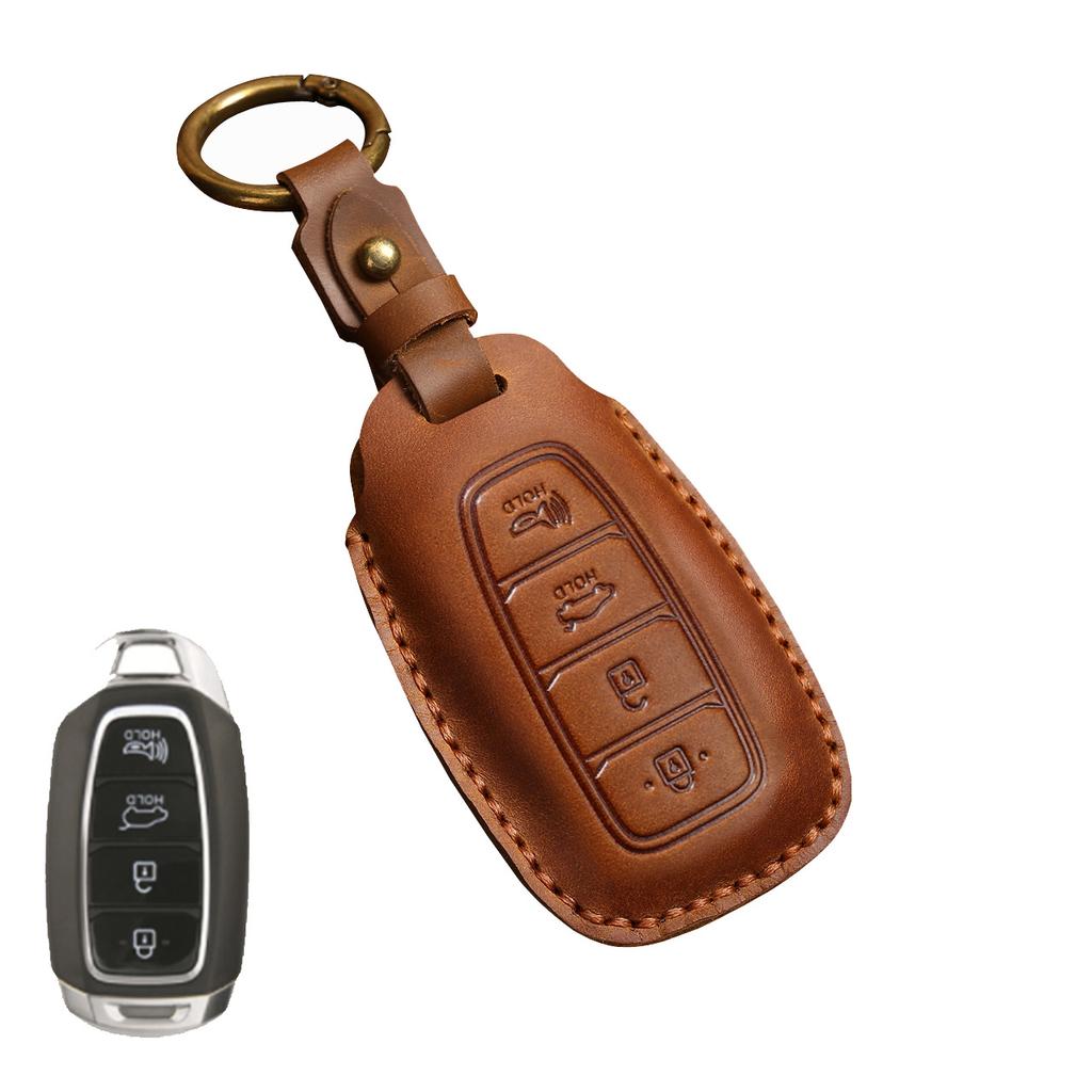 Genuine Leather Key Fob Cover for Hyundai Fista Elantra Mistra Santa Fe - Premium Car Key Protector Case