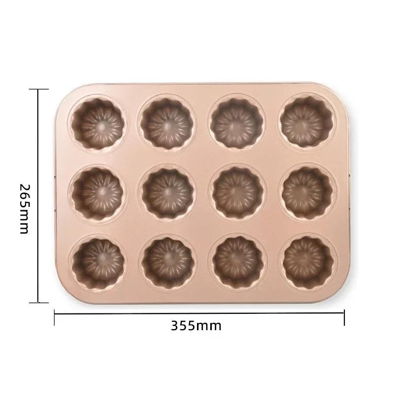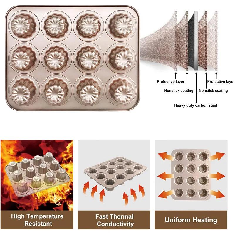 Форма Canele с 12 отверстиями, антипригарное покрытие из углеродистой стали, форма для десерта, кекса, форма для кексов, микроволновая печь, приспособление для выпечки пудинга, пищевая посуда