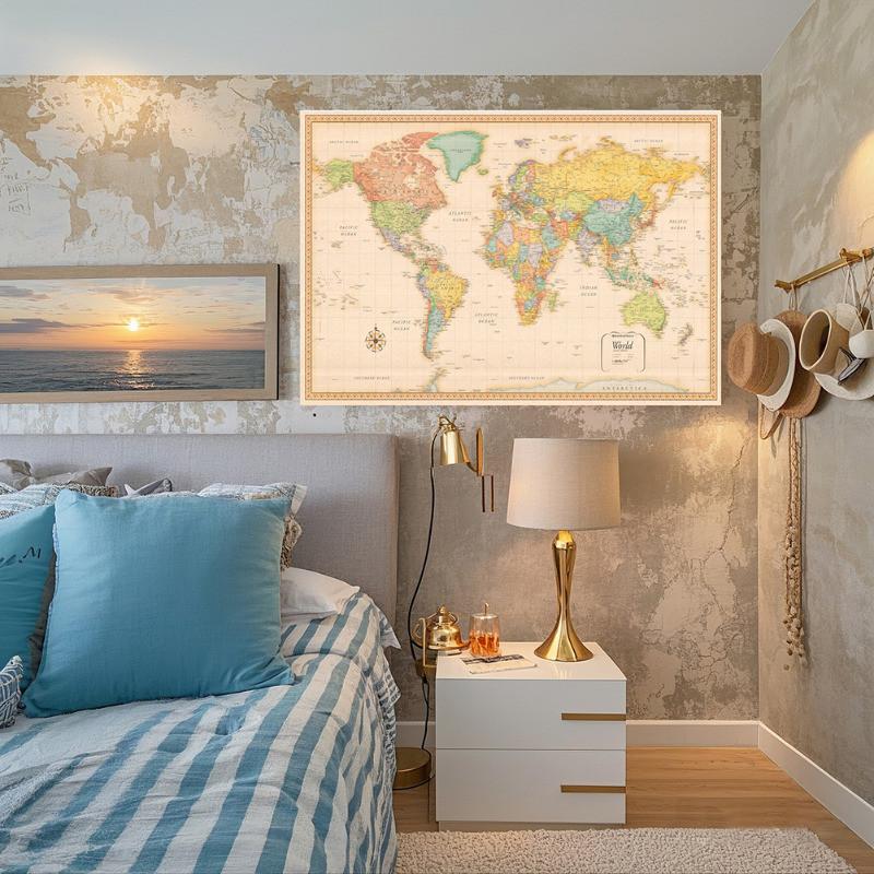 Винтажная карта мира, полиэстер, настенное украшение, для использования в помещении и на открытом воздухе, образовательный декор, настенное искусство, дорожные принадлежности