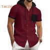 Стильный дизайн: Мужской топ прямого кроя с короткими рукавами и капюшоном, выполненный в стиле цветовых блоков, создающий универсальный и повседневный модный образ.