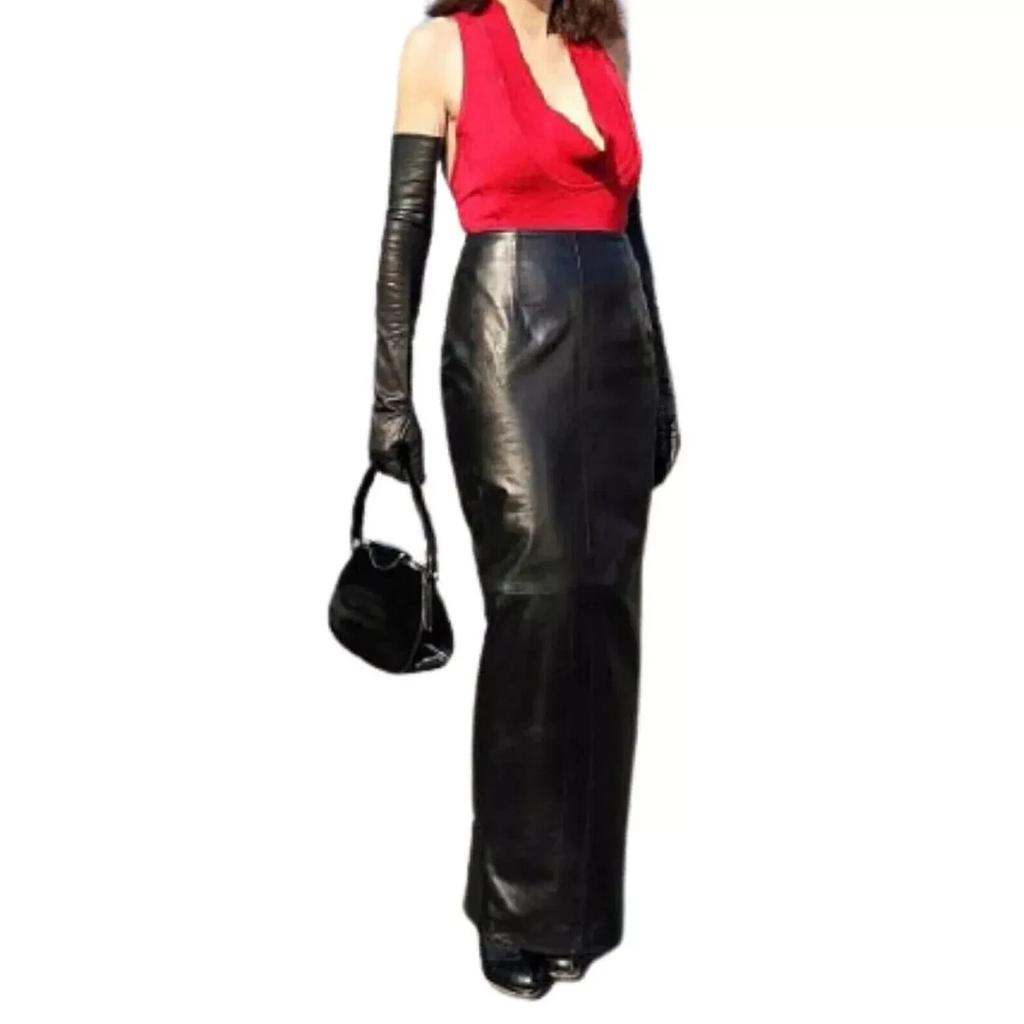 Женская юбка из натуральной овчины длинная черная ручной работы кожаная стильная для вечеринки мягкая — купить товар онлайн с бесплатной доставкой по всему миру!