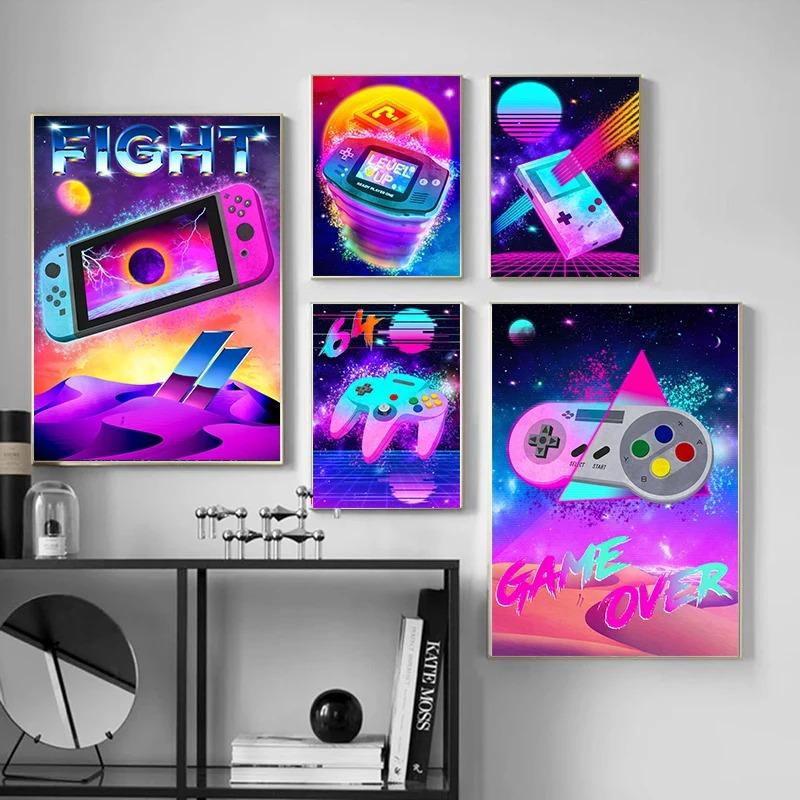 Мальчик Игровой Плакат Картина Холст Красочная Картина Искусство Настенные Печати Геймер Ручка Гарнитура Детская Комната Домашнее Украшение Без Рамки