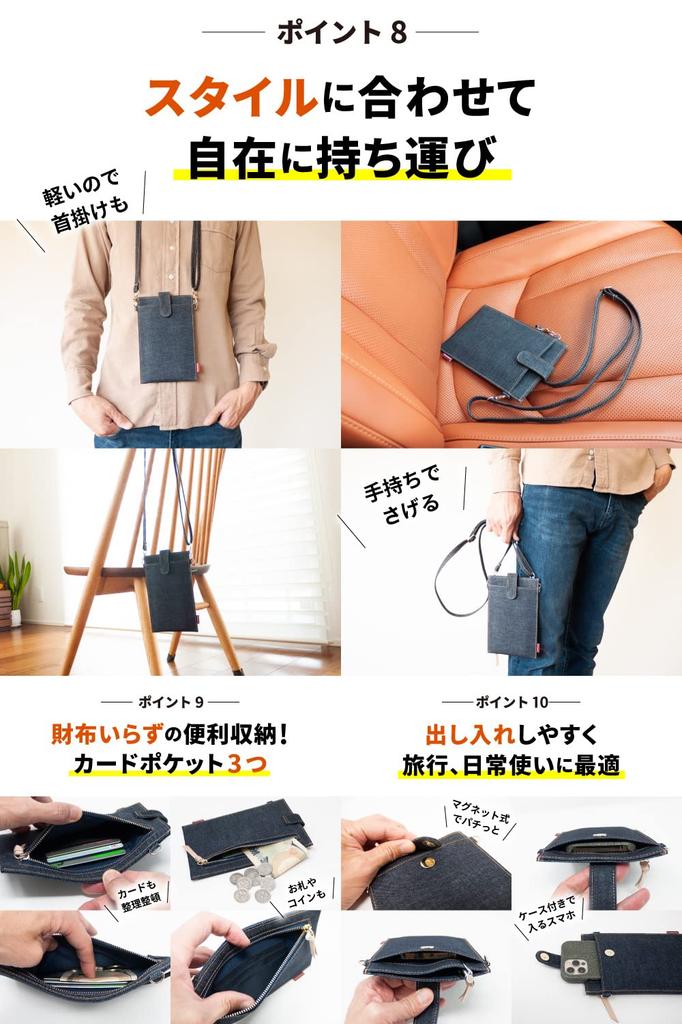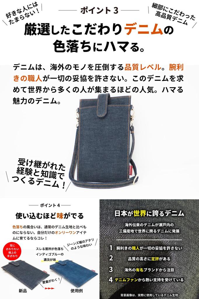 🔵 [Я в восторге от очарования денима. [Наплечная сумка для смартфона] 🔹Легко носить смартфон▶︎Легко класть и вынимать. 🔹Если вы хотите носить два смартфона, этот чехол для вас ▶︎Клапан предотвращает его выпадение. 🔹Наплечная сумка для смартфона из денима, тщательно отобранного у всемирно известных японских производителей денима ▶︎Этот высококачественный деним обладает уровнем качества, превосходящим продукцию из-за рубежа. Опытные мастера не допускают никаких компромиссов 🔹Чем больше пользуешься, тем вкуснее.▶︎Фактура ткани несравнима с обычной джинсовой тканью. Если вы хотите вырастить свой собственный уникальный сорт, то это то, что вам нужно.. 🔹Хранение на молнии позволяет хранить ваш смартфон и карты вместе ▶︎3 кармана для карт сзади. 🔹Регулируемая длина, чтобы вы могли свободно двигаться, не используя руки ▶︎ Вы будете рады, что обе ваши руки свободны. 🔹Вы можете носить его свободно, чтобы соответствовать вашему стилю▶︎ Он легкий, поэтому вы также можете носить его на шее.. 🔹Удобное хранение без необходимости в кошельке▶︎ 3 кармана для карт. 🔹Легко вставляется и вынимается, идеально для путешествий и повседневного использования ▶︎Магнитный тип, который защелкивается. 🔹Размер: Ширина: приблизительно. 12.5cm Высота: приблизительно. Толщина 19 см: приблизительно. 0.8см ■Вес: приблизительно. 106 г (включая плечевой ремень)