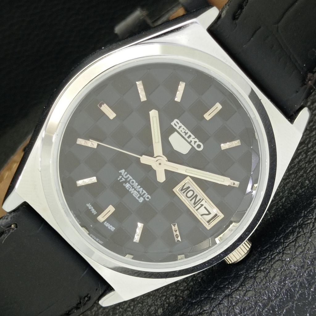 ВОССТАНОВЛЕННЫЕ МУЖСКИЕ ЧАСЫ SEIKO 5 AUTOMATIC, СДЕЛАНО В ЯПОНИИ, ЧЕРНЫЙ ЦИФЕРБЛАТ, ИЗГОТОВЛЕНЫ НА ЗАКАЗ a440038-2 QV90-a440038