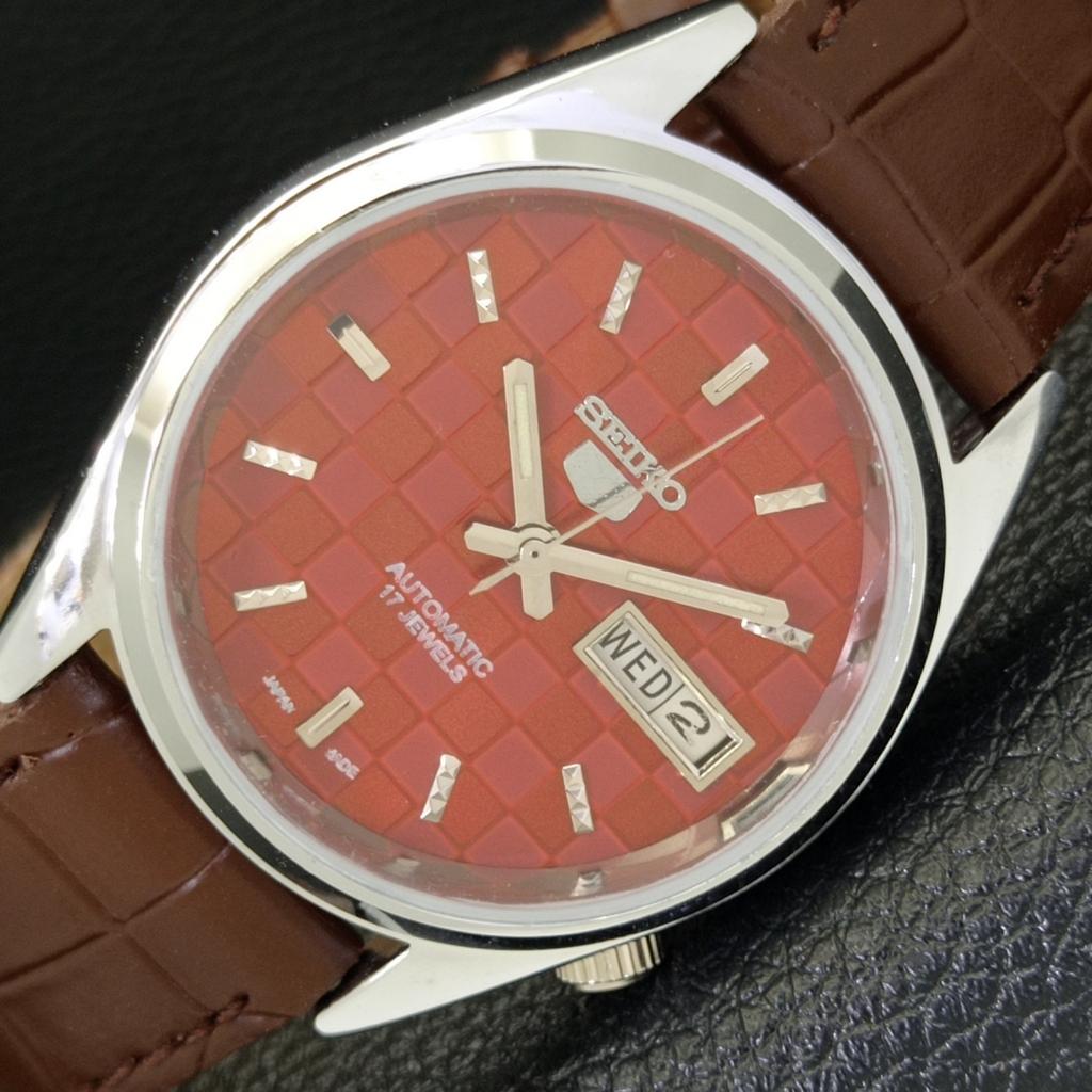 ВОССТАНОВЛЕННЫЕ МУЖСКИЕ ЧАСЫ SEIKO 5 AUTOMATIC, СДЕЛАНО В ЯПОНИИ, КРАСНЫЙ ЦИФЕРБЛАТ, ИЗГОТОВЛЕНЫ НА ЗАКАЗ a440121-2 QV90-a440121