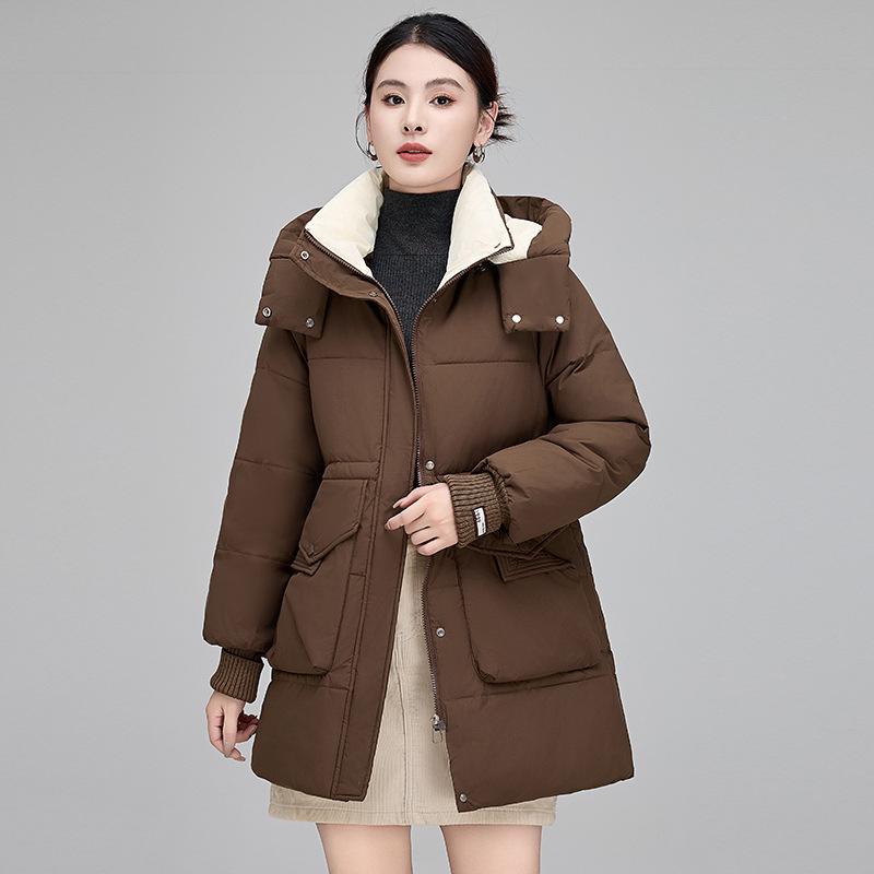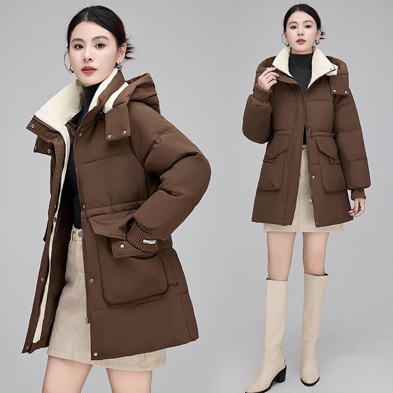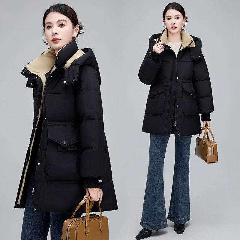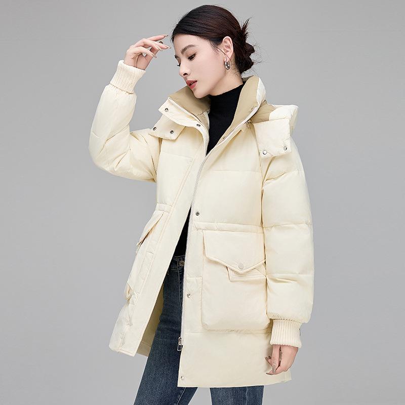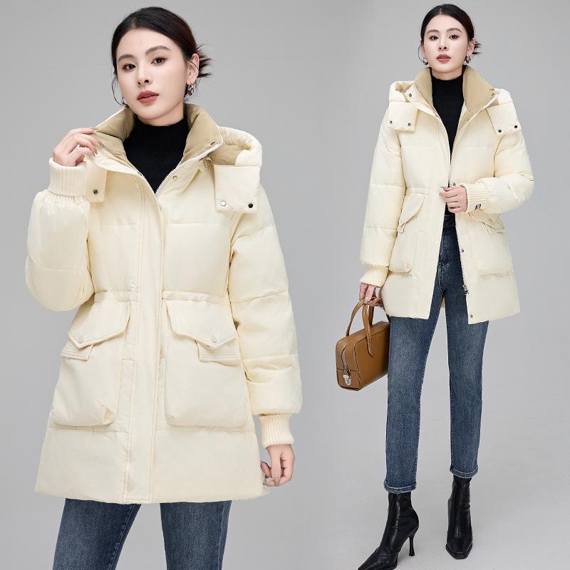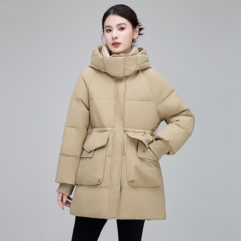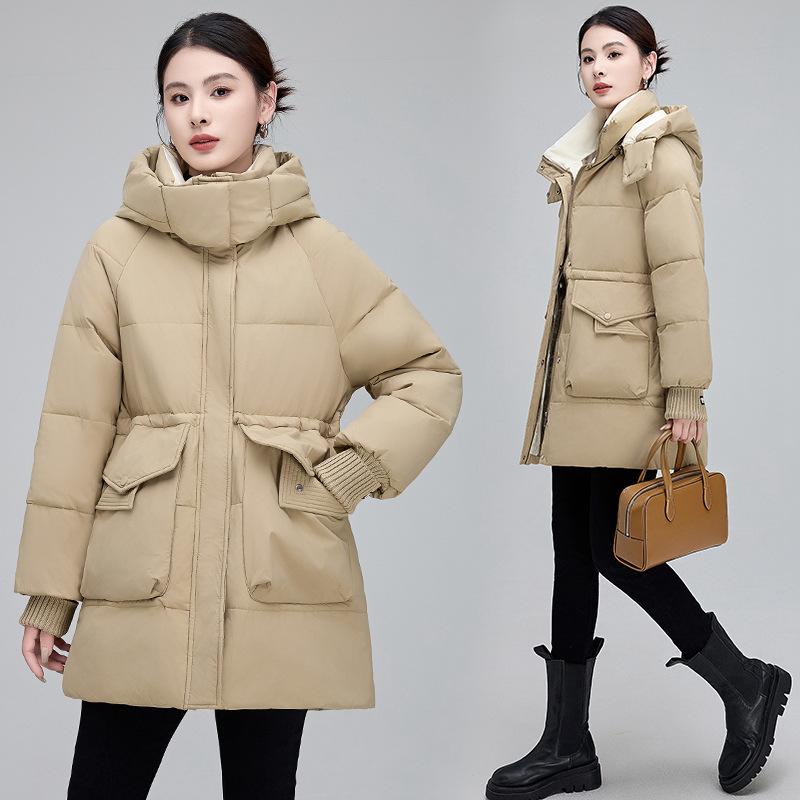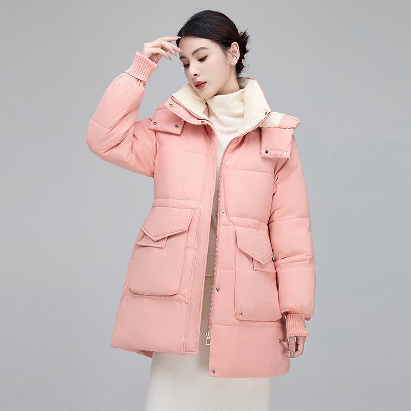 Пуховик средней длины для женщин, зимняя новая модная женская повседневная куртка в корейском стиле на талии, утиный пух