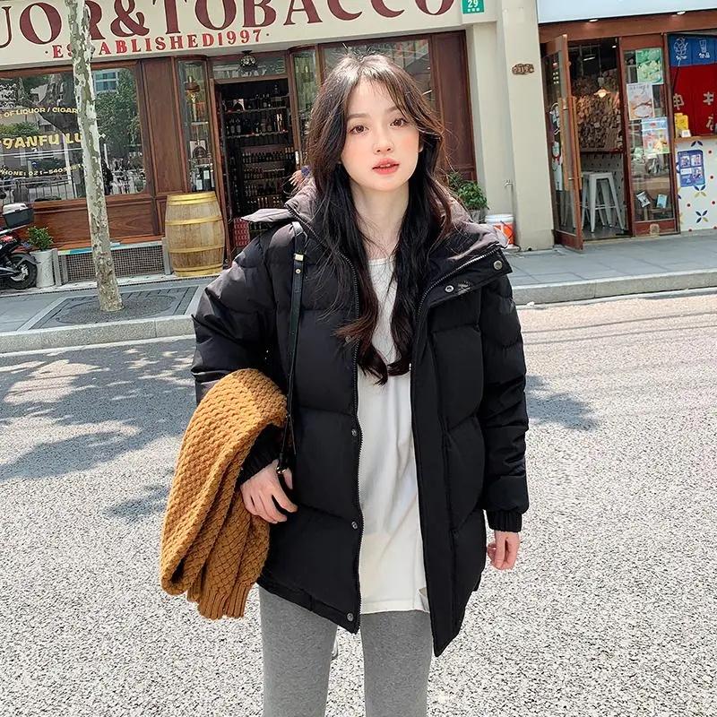 Корейская куртка из хлопка с капюшоном, женская зимняя парка, стеганое пальто, толстая теплая свободная стеганая женская зимняя одежда, верхняя одежда