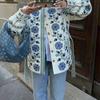 Куртка с принтом на шнуровке и подкладкой, женская, с длинным рукавом, свободный цветочный принт, однобортное стеганое пальто, повседневный топ большого размера для поездок на работу, осень-зима