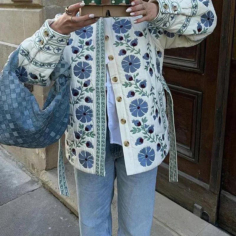 Куртка с принтом на шнуровке и подкладкой, женская, с длинным рукавом, свободный цветочный принт, однобортное стеганое пальто, повседневный топ большого размера для поездок на работу, осень-зима — купить товар онлайн с бесплатной доставкой по всему миру!