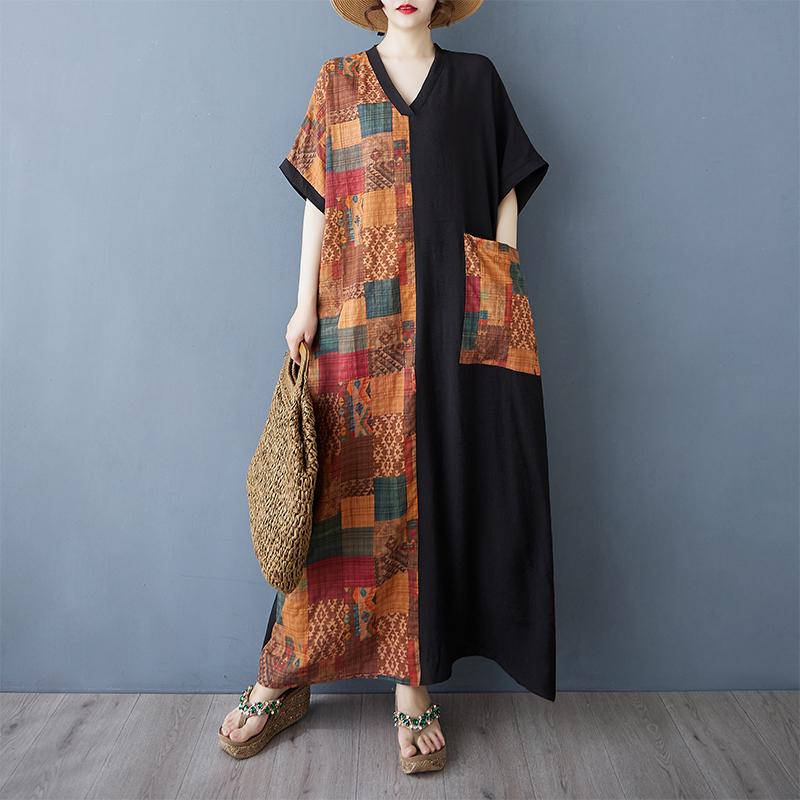 Dimanaf Новое женское летнее длинное повседневное платье 2025 года большого размера, свободное льняное винтажное базовое макси-платье 9847