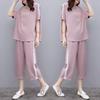 Женский летний костюм из двух частей больших размеров в корейском стиле: Узкий топ с короткими рукавами и свободные широкие брюки