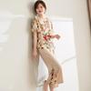 Летний стильный комплект из рубашки с цветочным принтом и широких брюк для женщин 2025 года