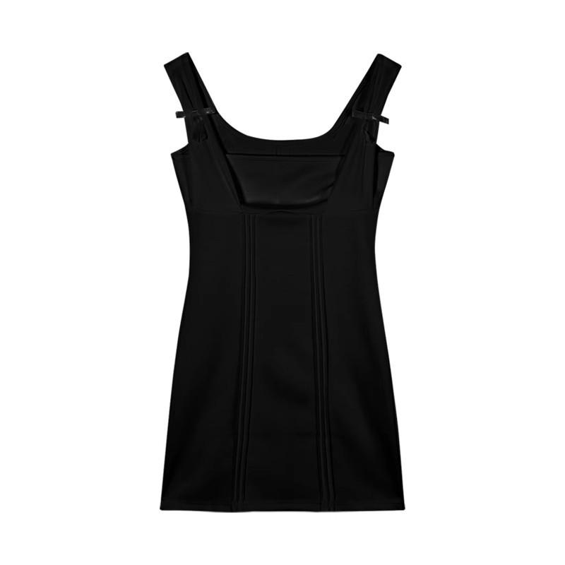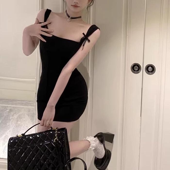 Летнее черное платье-сарафан для миниатюрных женщин с бантом и юбкой на бедрах - Французский сексуальный стиль