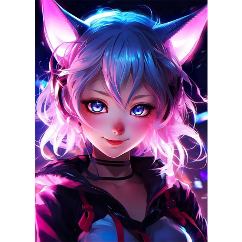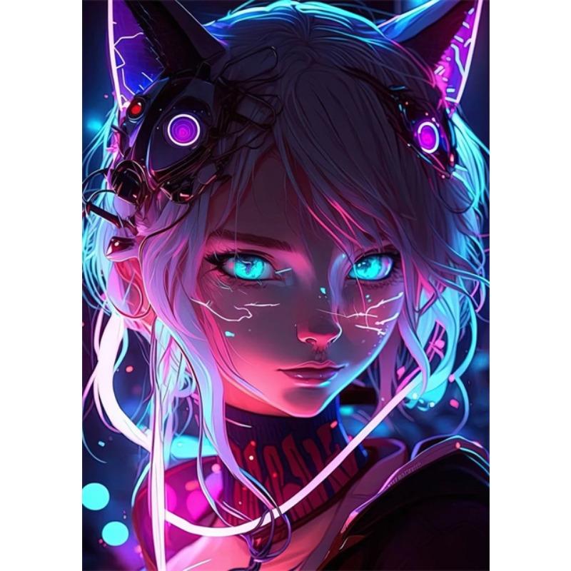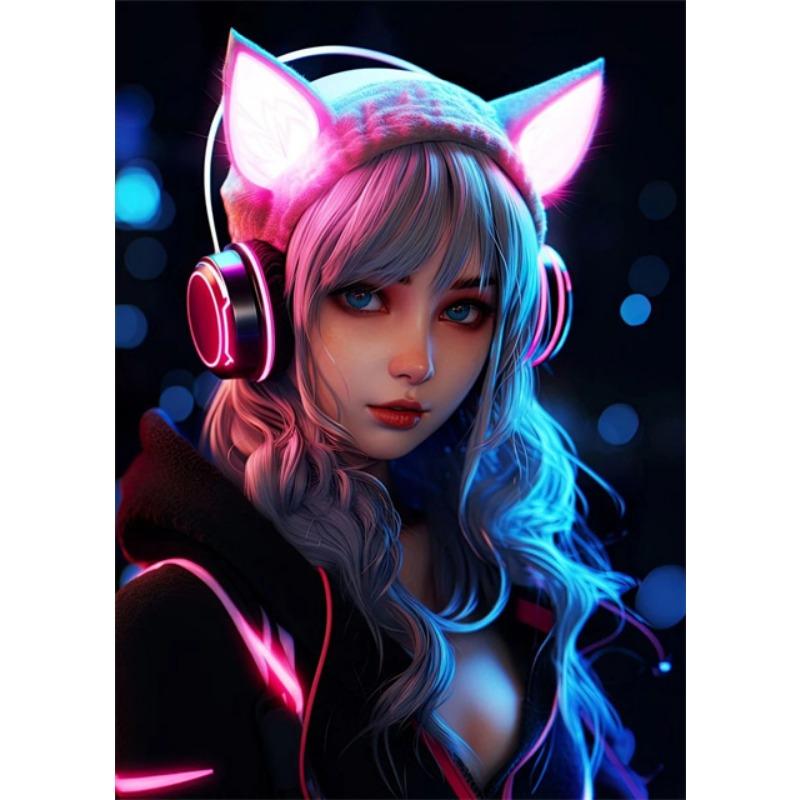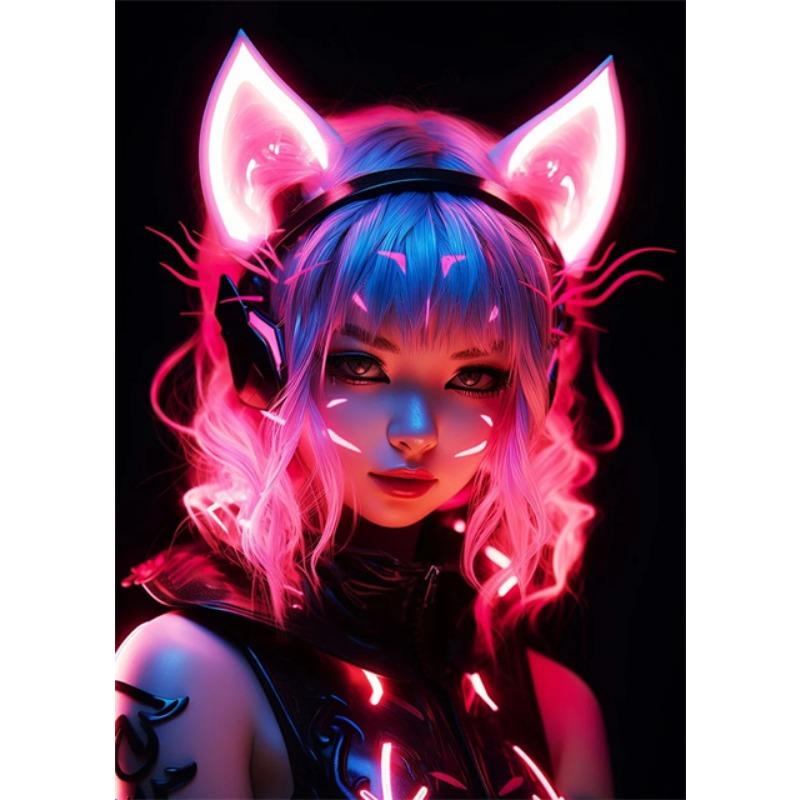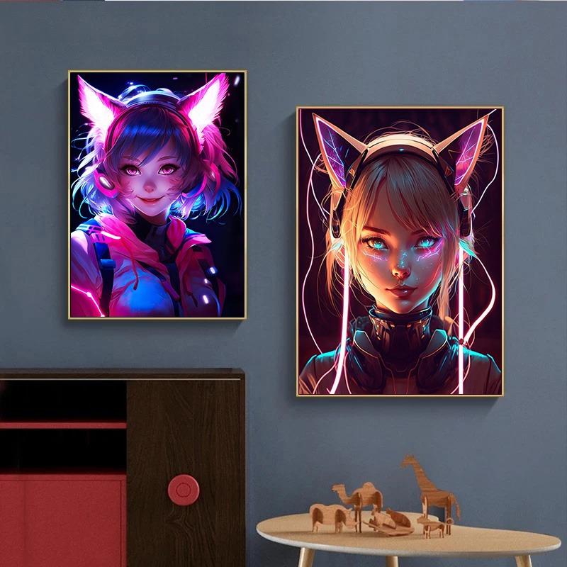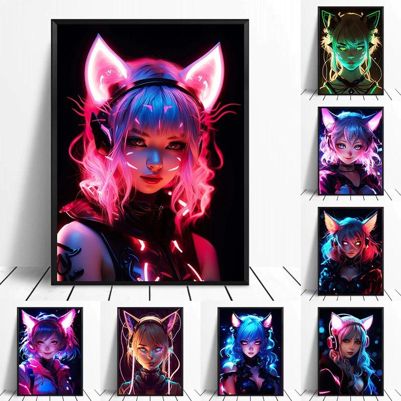 Милые неоновые аниме-постеры и принты с кошкой-девушкой, картины на холсте, красивые настенные рисунки с девушками и мангой для украшения игровой комнаты дома