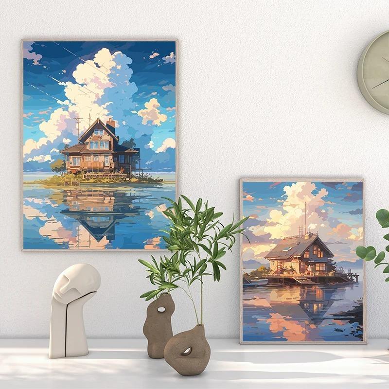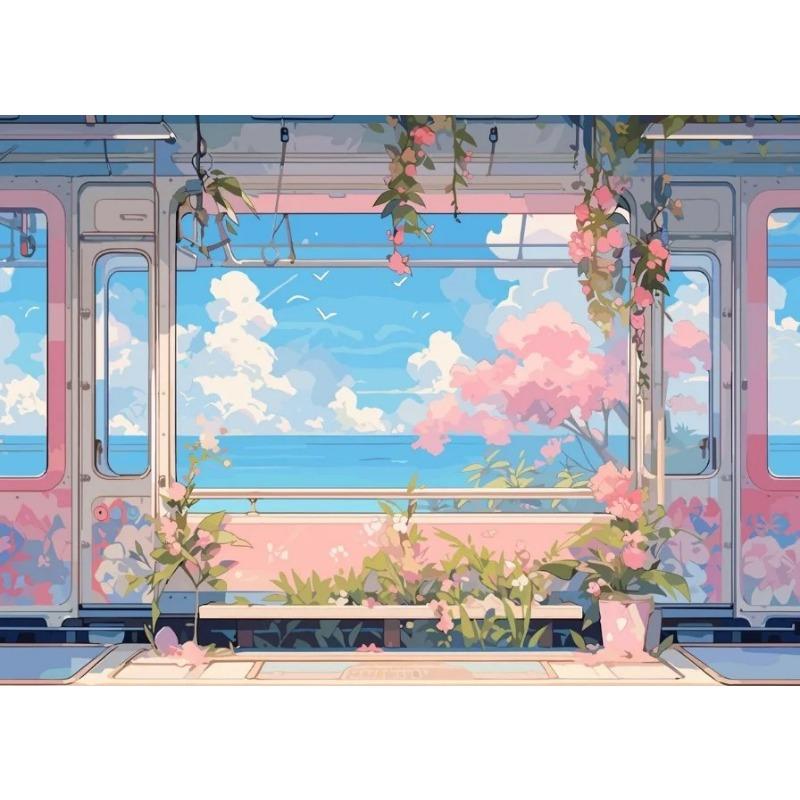 Эстетизм Аниме Сцены Постеры Сакура Трамвай Поезд Вид на океан Печать на холсте Настенный пейзаж Искусство Картина для домашнего декора