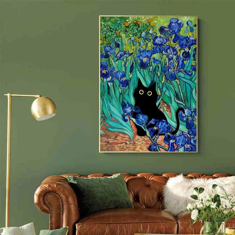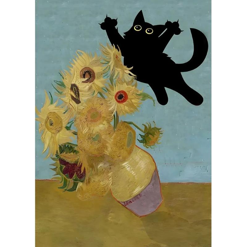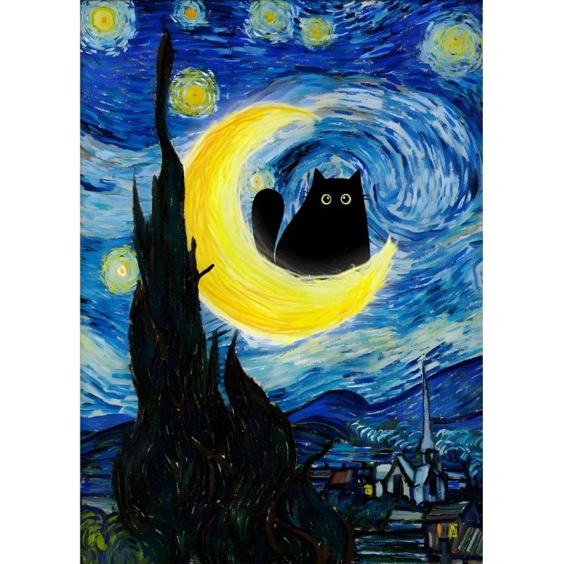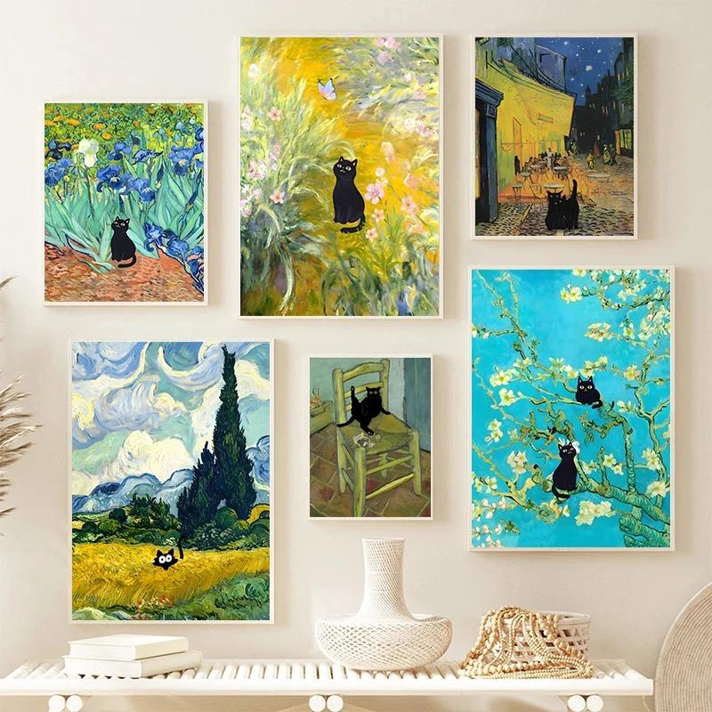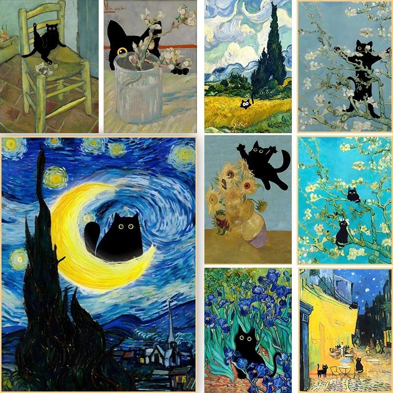 Звездная ночь Ван Гог Известные произведения искусства Черный кот Смешные постеры Печать на холсте Картины Репродукции Настенное искусство Фреска Домашний декор