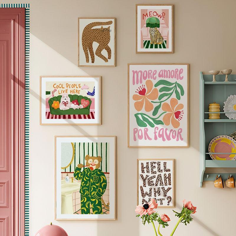 Девочка Медведь Леопардовый Кот Собака Цветы Абстрактные Постеры и Принты Настенное Искусство Холст Живопись Картины Отель Бар Для Гостиной Декор