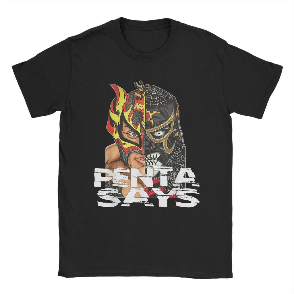 Penta Says Lucha Bros Футболка для мужчин Чистый хлопок Винтажная футболка с круглым вырезом Футболки для боксеров с коротким рукавом Товары размера плюс