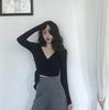 Женский облегающий топ со шнуровкой, V-образным вырезом, длинными рукавами и открытой талией — купить товар онлайн с бесплатной доставкой по всему миру!