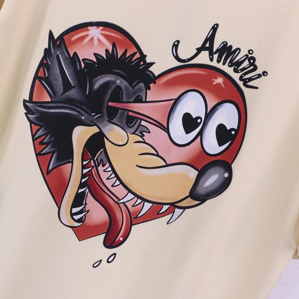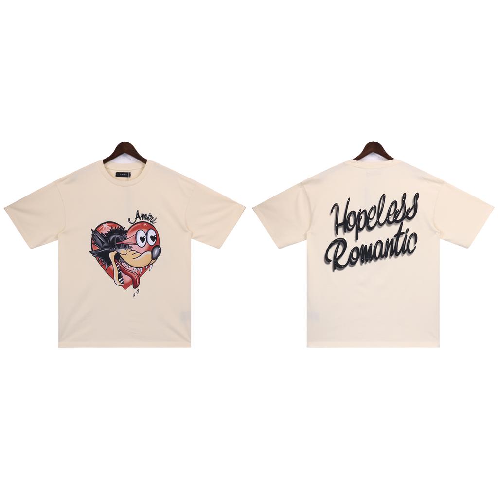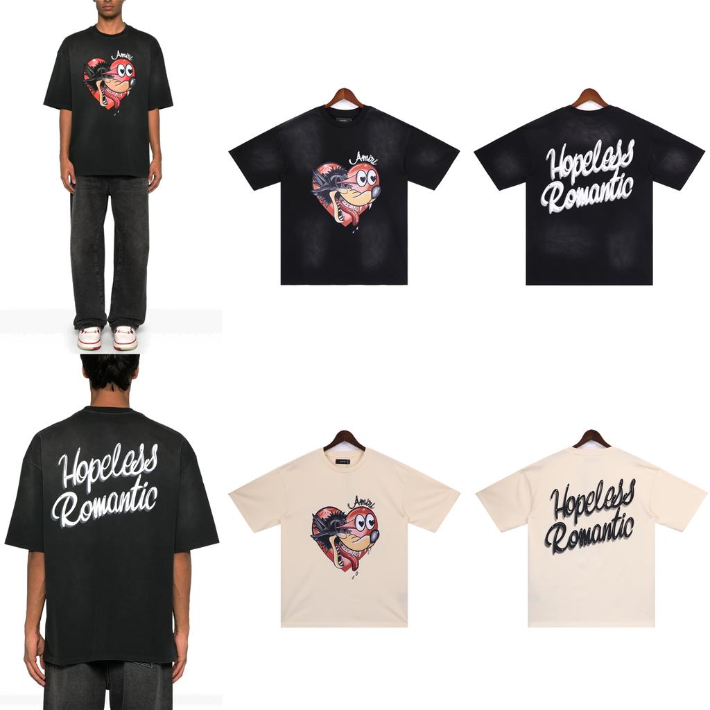 Лето 2025 Новая AMIRI Безнадежный Романтик Вареный Цвет Мужская и Женская Свободная Хлопковая Футболка Большого Размера Высокого Качества