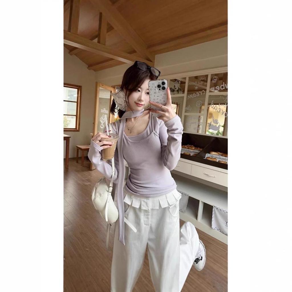 Женская весенняя ветрозащитная футболка с длинными рукавами и лентой, состоящая из двух частей — купить товар онлайн с бесплатной доставкой по всему миру!